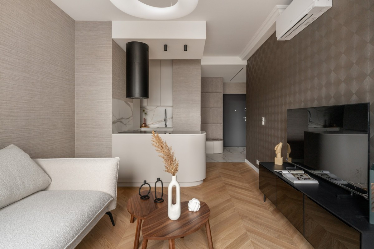 A unique apartment with an area of 44,28 m2 located in a new investment at ul. Górnośląska 6. The premises are not yet inhabited. The apartment is located on the 1st floor in the 8th floor building. It is distanced from the street by a platform with a horizontal garden, which ensures intimacy and a view of additional greenery through wooden and panoramic windows. The apartment was designed by a design office, taking into account high-class materials. Fully furnished and equipped with household appliances (washing machine, fridge, dishwasher, microwave oven, induction) and RTV (50-inch TV). Parquet on the floor, oak French herringbone. Furniture made to size by a valued carpentry workshop. The curves on the island and the wardrobe refer to the modernist block of the building covered with natural stone, stone countertops. The smart home system, air conditioning in each room, electric mosquito nets, heated floor in the bathroom are just some of the amenities that await the new owner. The apartment includes a parking space in the underground garage additionaly 170 000 zł.