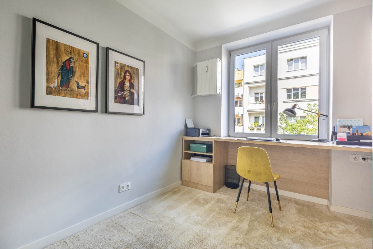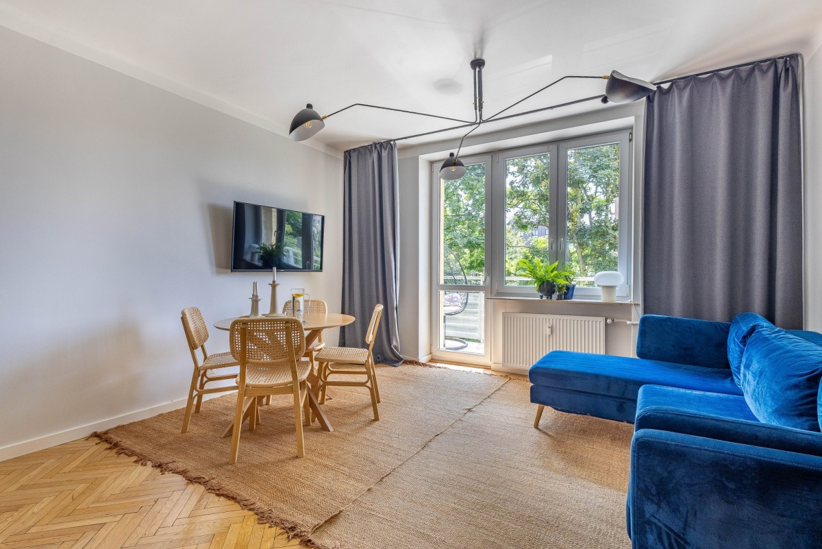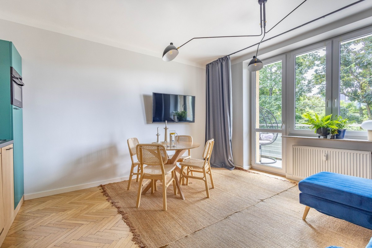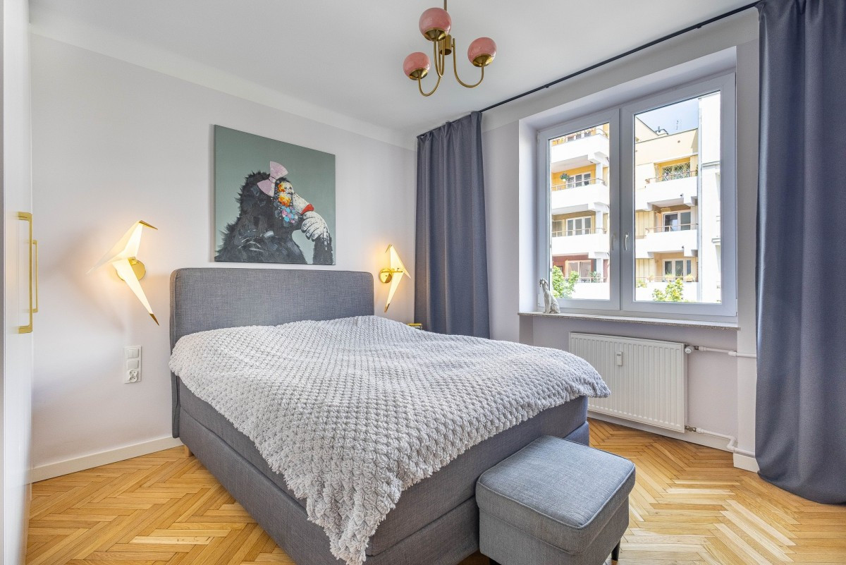 Mieszkanie jest klimatycznie zaaranżowane, dwustronność, duże okna oraz wysokość 2,8 m, zwiększają poczucie przestrzeni. Część dzienna wyposażona została w klimatyzacje. Lokal kilka lat temu przeszedł generalny i gruntowny remont, w ramach którego między innymi zmieniono układ funkcjonalny i wymieniono wszystkie instalacje. Ciekawa kolorystyka, niebanalne dodatki i oryginalne akcenty takie jak dębowy parkiet, sprawiają że wnętrza są niezwykle przytulne i ciepłe.