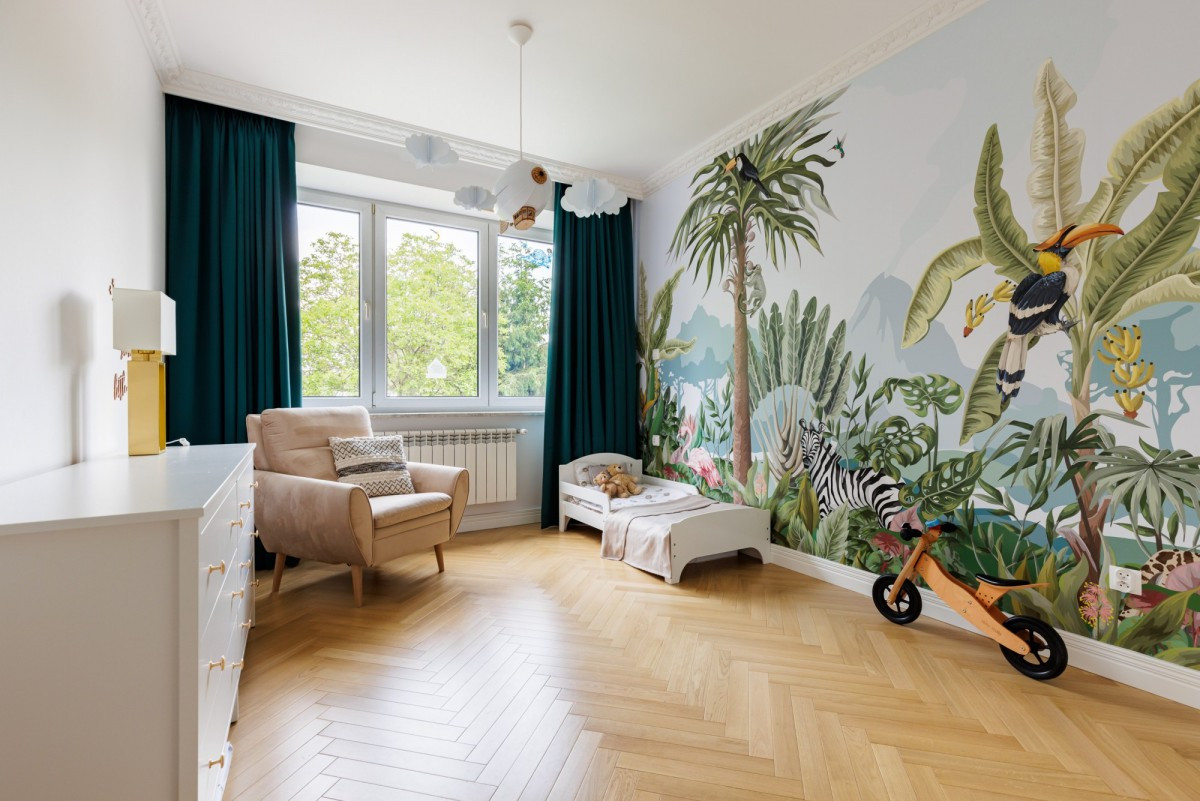 Wysokie sufity (blisko 3 metry) dodatkowo akcentują klimat mieszkania kamienicznego oraz dają poczucie przestrzeni.