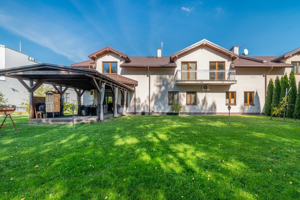 Z radością prezentujemy Państwu wyjątkową ofertę klasycznego domu w zabudowie bliźniaczej, który usytuowany jest na renomowanych Alejach Jerozolimskich. Ta niezwykła nieruchomość oferuje doskonałe warunki do komfortowego życia, otoczona urokliwą zabudową jednorodzinną, z prywatnym wjazdem od Alej Jerozolimskich. To miejsce, gdzie tradycja i nowoczesność spotykają się, tworząc idealne miejsce do zamieszkania.ATUTY DOMU: Prestiżowa lokalizacja, Przestronne wnętrze, Prywatna droga dojazdowa, Wyjątkowy standard wykończenia, Wysokie 3 metrowe pomieszczenia, Przytulny ogród z tarasem, Dwustanowiskowy garażOPIS NIERUCHOMOŚCI: Ekskluzywny dom o powierzchni 468 m2 oferujący unikalne połączenie komfortu mieszkania w sercu miasta.ROZKŁAD DOMU: Parter:- Otwarta przestrzeń dzienna: salon z kuchnią i jadalnią;- Pokój gościnny/sypialnia z łazienką i garderobą;- Duży wiatrołap;- WC;- Garaż 2-stanowiskowy;- Pomieszczenie gospodarcze;- Zadaszony taras (niewliczany do powierzchni użytkowej);Piętro:- Pokój 1 z garderobą i balkonem;- Pokój 2 z garderobą i balkonem;- Pokój 3 z garderobą;- Pokój rekreacyjny (70,5 m2);- Przestronna łazienka z wanną i kabiną prysznicową;- Pralnia z suszarnią;LOKALIZACJA: Dom znajduje się na Ursusie, przy renomowanych Alejach Jerozolimskich, zaledwie 10 km od Centrum Warszawy. W okolicy znajdują się liczne szkoły, przedszkola, żłobki i sklepy, co zapewnia wygodę codziennego życia.KOMUNIKACJA: Dzięki doskonałej lokalizacji, dom jest dobrze skomunikowany z resztą miasta.INFORMACJE DODATKOWE: Budynek wykonany z bloczków ceramicznych na płycie fundamentowej. Część komunikacyjna przystosowana do montażu windy stanowi dodatkowe udogodnienie. Dom jest gotowy do zamieszkania i oferuje wysoki standard wykończenia.Zapraszamy do kontaktu i umówienia się na prezentację tego unikalnego domu na Ursusie!