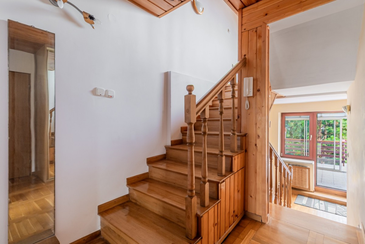 zielona, spokojna okolica, sprzyjająca wypoczynkowi, w pobliżu pełna infrastruktura: sklepy (Żabka, Biedronka), siłownia, punkty usługowe, szybki dojazd do centrum Warszawy i innych dzielnic.