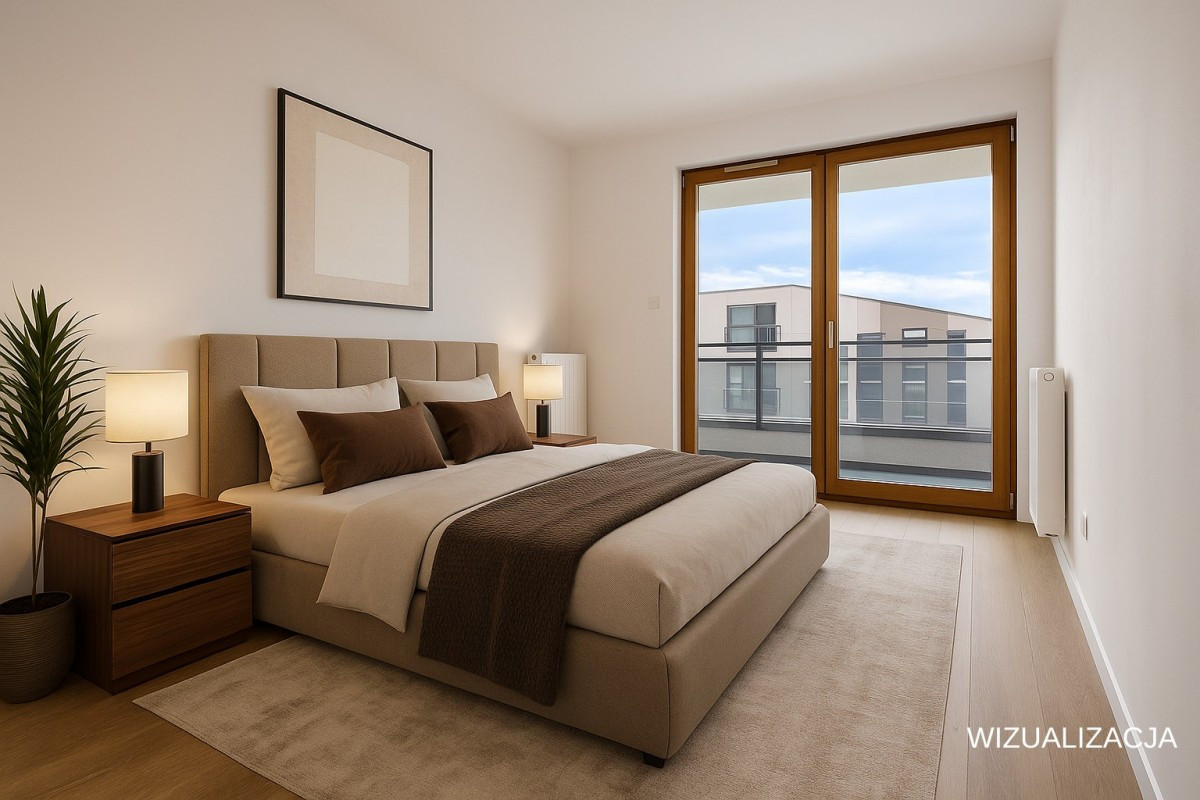 - Sypialnia z wyjściem na balkon od strony południowej