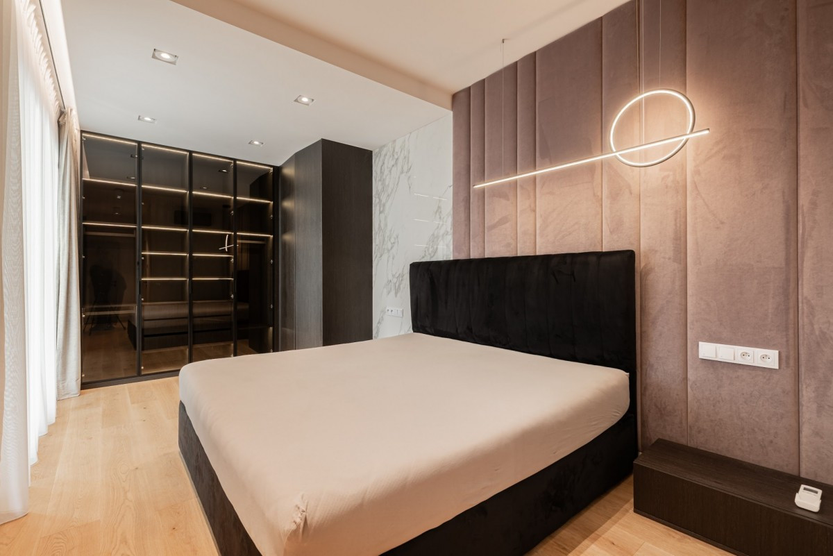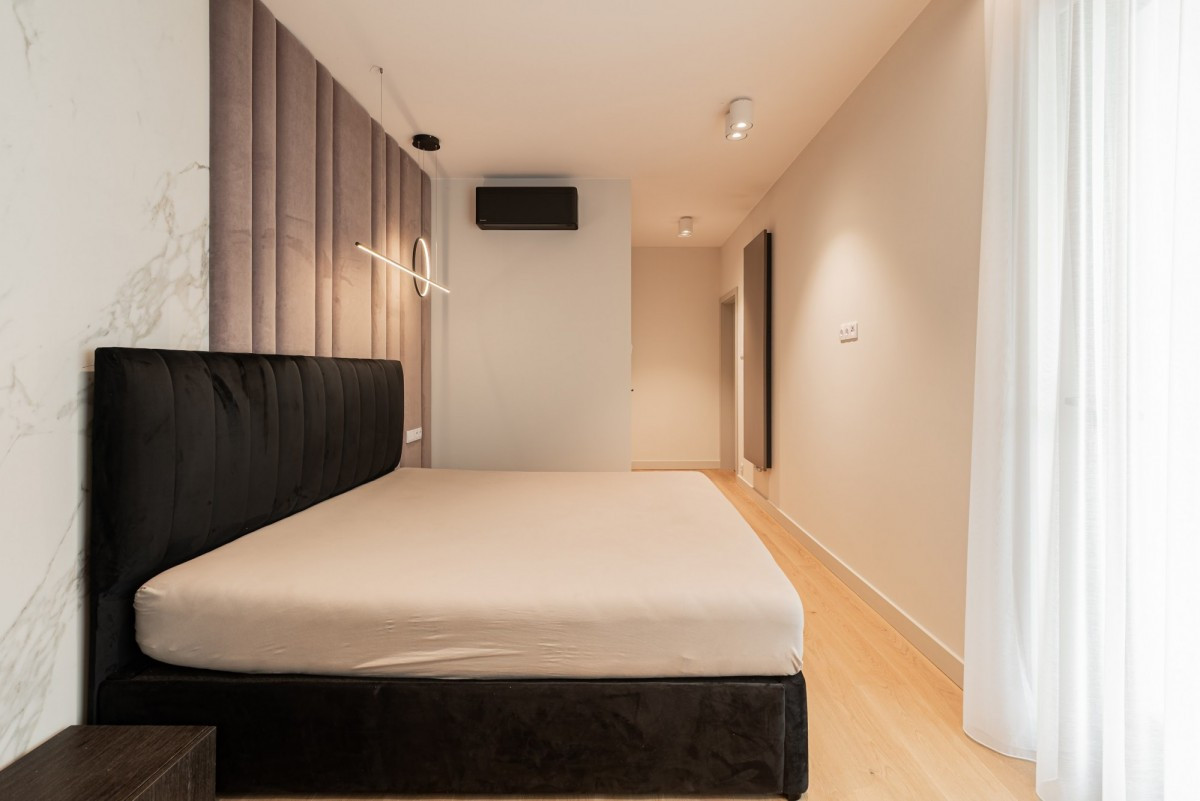Apartament znajduje się na parterze prestiżowego, kameralnego budynku zrealizowanego przez dewelopera Yareal. Został wykończony z najwyższej jakości materiałów - dębowe podłogi, kamienne spieki, klimatyzacja w każdym pomieszczeniu oraz inteligentny system Fibaro.