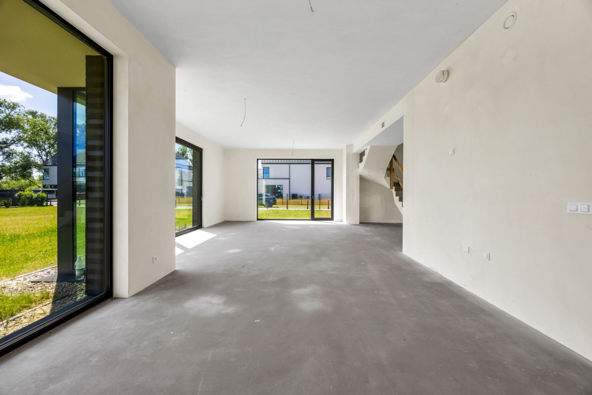 Nowoczesny dom w zabudowie bliźniaczej o powierzchni 220m2 usytuowany na ogrodzonej działce 910m2.