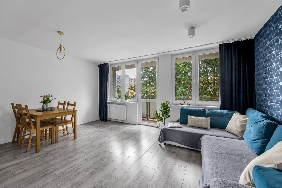 Ogromnym plusem jest lokalizacja - zaledwie 6 minut pieszo do stacji metra Kondratowicza, a w pobliżu także liczne autobusy i tramwaje. Jednocześnie wokół nie brakuje zieleni i przestrzeni do aktywnego spędzania czasu. Pod blokiem znajduje się bezpłatny parking dla mieszkańców.