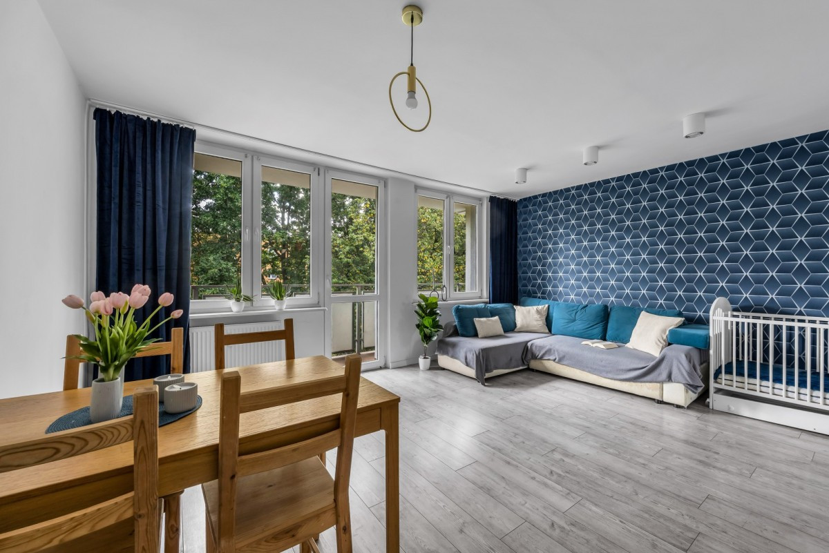 Przy ul. Krasiczyńskiej 11, czeka na Ciebie jasne i ustawne mieszkanie o powierzchni 47 m². Obecnie 2-pokojowe, z łatwą możliwością przerobienia na 3 pokoje - świetna opcja, jeśli chcesz mieć elastyczną przestrzeń na dziś i jutro. Budynek z lat 70. jest po modernizacji: ocieplony, z wymienionymi pionami, spokojny i kameralny. Atutem mieszkania jest układ dwustronny (południe-północ) - zapewnia świetną wentylację i naturalne doświetlenie przez cały dzień. Oba widoki wychodzą na zielone podwórze, co daje ciszę i brak zabudowy tuż za oknem. Na piętrze jest tylko dwóch sąsiadów. Do mieszkania przynależy piwnica ok. 3 m² oraz dostęp do rowerowni, więc ze schowkiem czy miejscem na jednoślad nie będzie problemu.