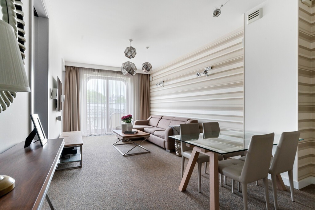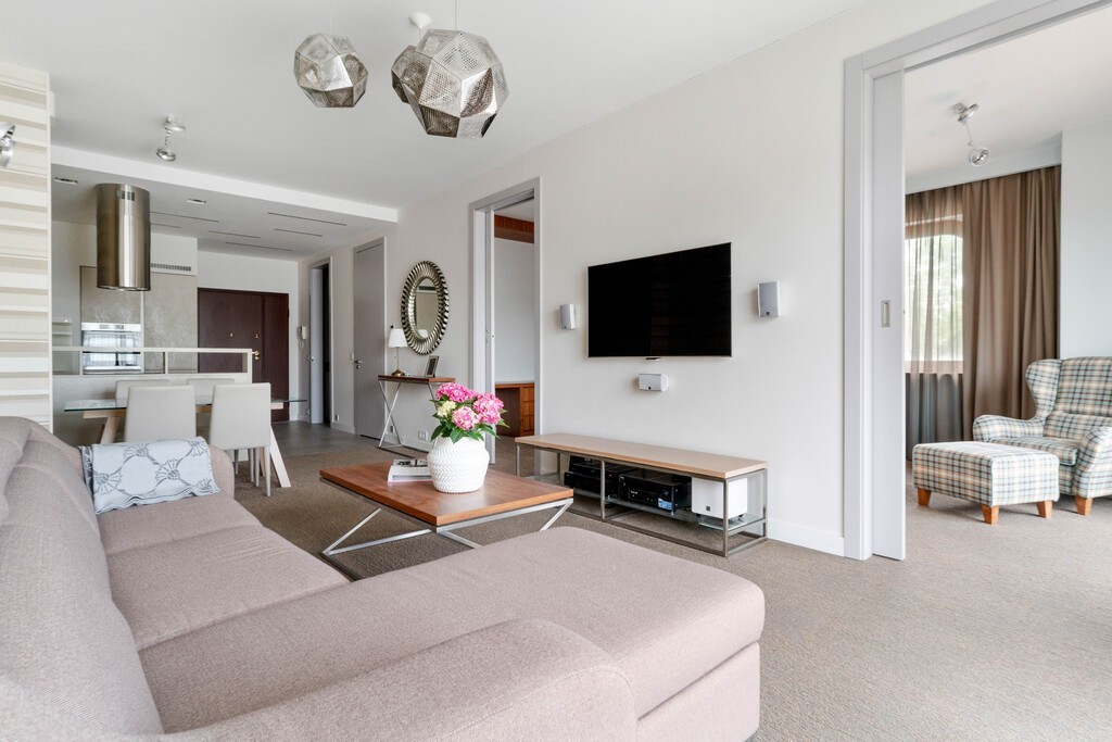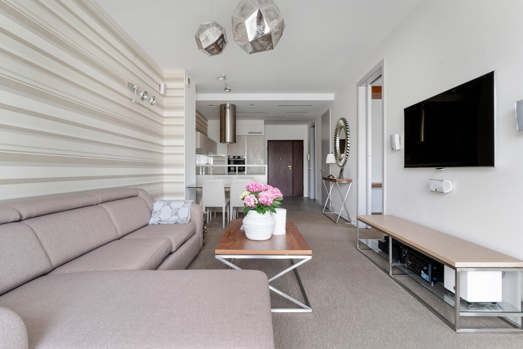 wysokogatunkowe tapety, designerskie oświetlenie i komfortowy komplet wypoczynkowy