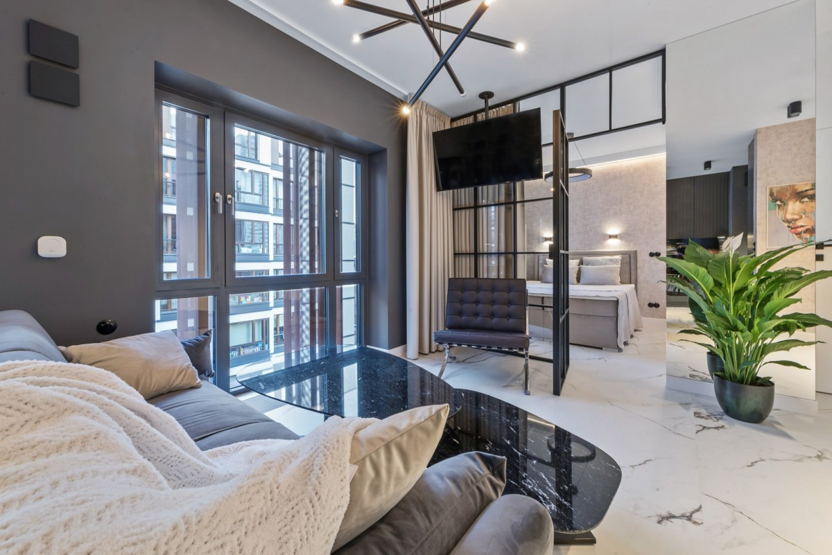 The apartment has been designed in a functional way and finished with high-quality materials.