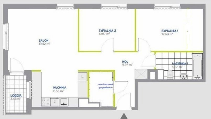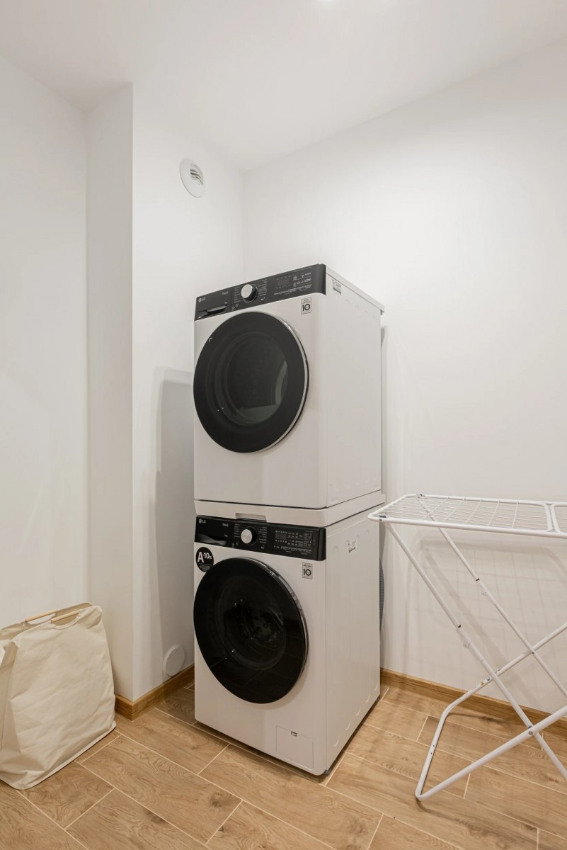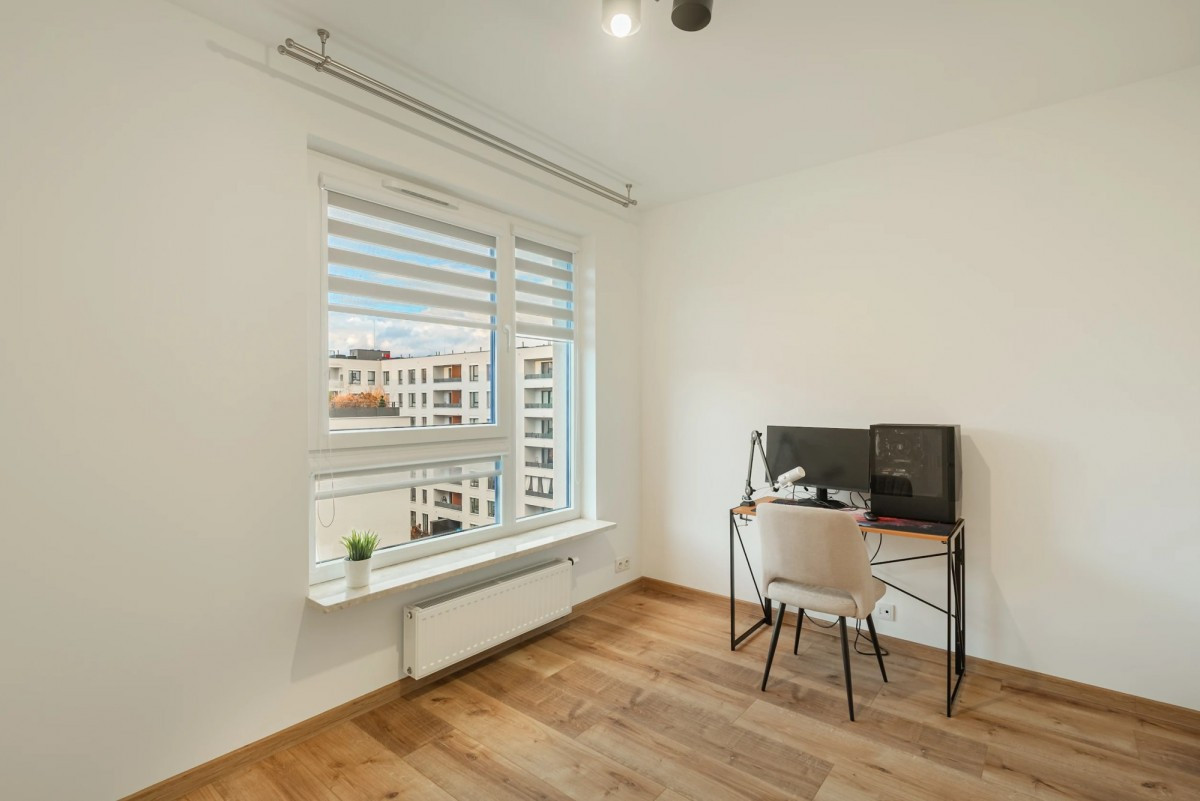 Przemyślany rozkład: salon z aneksem kuchennym, dwie sypialnie, łazienka oraz dodatkowe pomieszczenie, które obecnie pełni funkcję pralni - z możliwością aranżacji na drugą łazienkę lub garderobę.