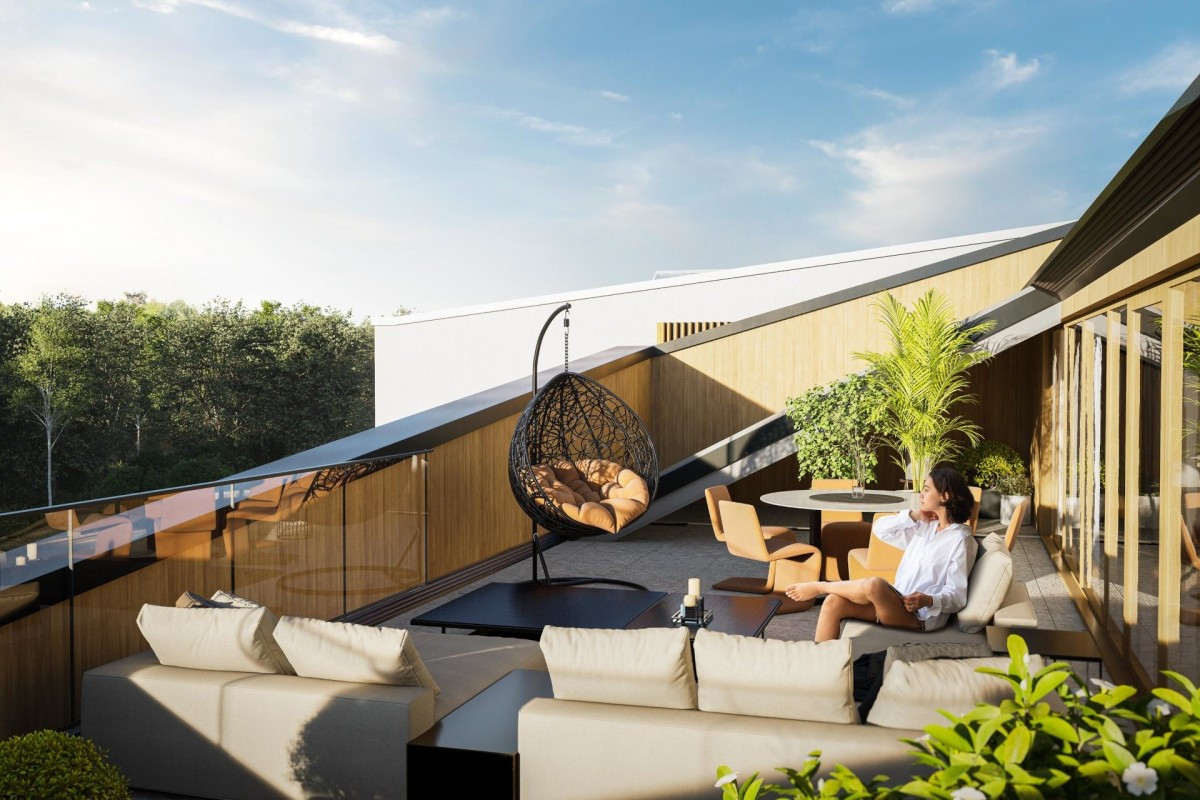 Cisza, spokój i wszechobecna zieleń tworzą tu atmosferę sprzyjającą odpoczynkowi i wyciszeniu. Kameralna, niska zabudowa współgra z nowoczesną architekturą, a starannie zaprojektowana roślinność zapewnia prywatność oraz naturalną izolację od miejskiego zgiełku.