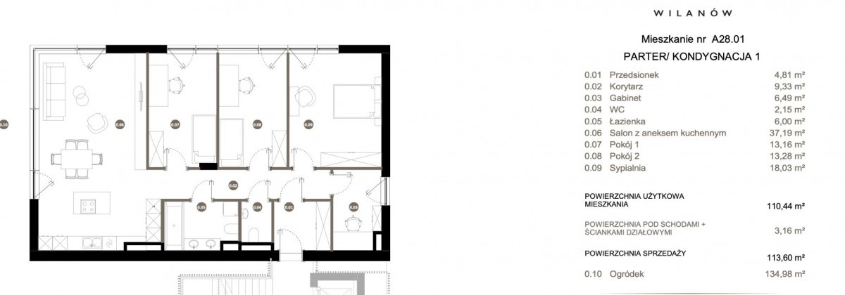 Apartament 110,44 m² + prywatny ogród 134,98 m²