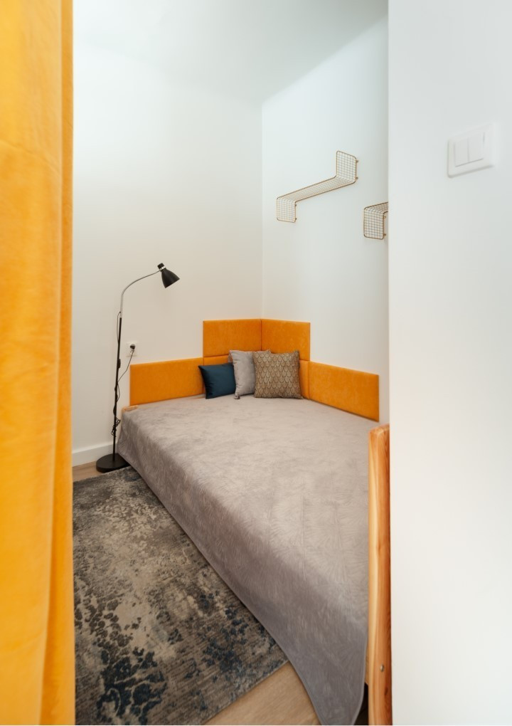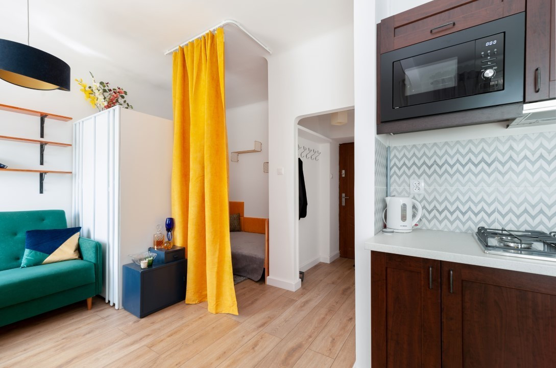 Wydzielona część sypialniana z łóżkiem, aneks kuchenny i część wypoczynkowa. Łazienka z kabiną prysznicową. W cenie najmu media, (woda gaz, internet).