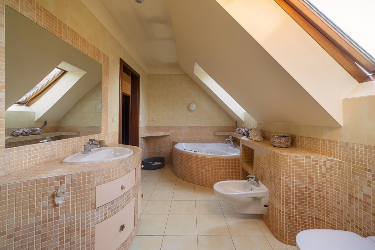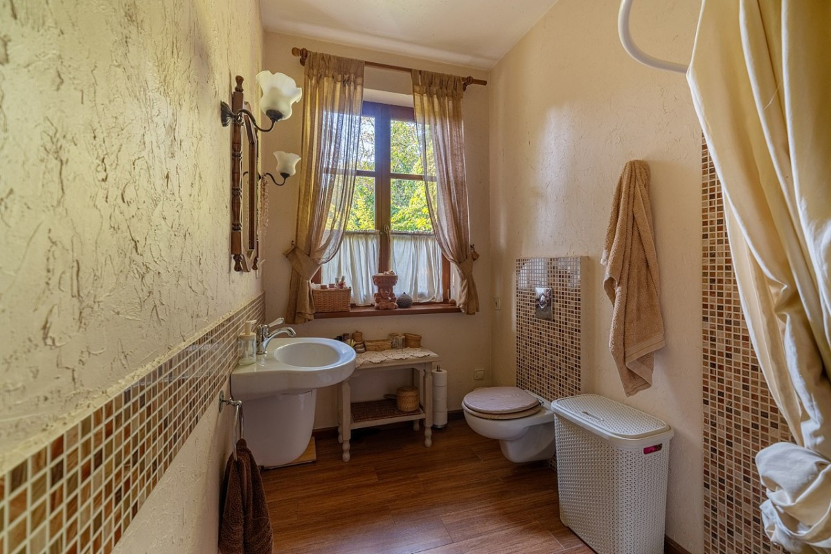 Dla pełnego bezpieczeństwa nieruchomość została wyposażona w potrójny system alarmowy - chroniący dom, podwórko oraz szyby. Komfort codziennego życia podnosi rekuperacja, która zapewnia stały dopływ świeżego powietrza, a także praktyczny odkurzacz ścienny ułatwiający utrzymanie czystości.