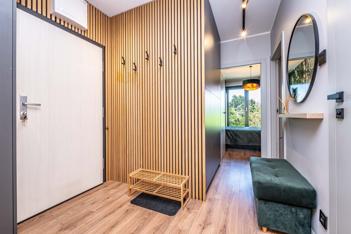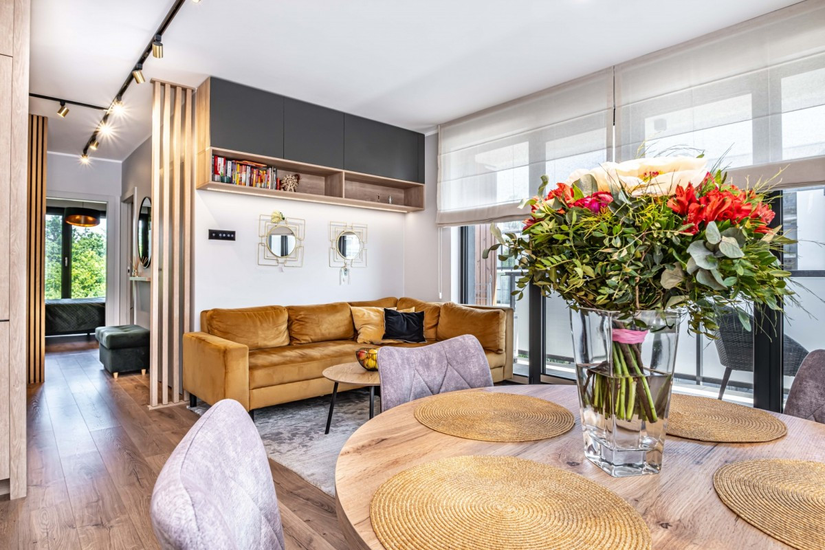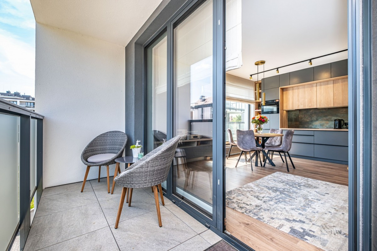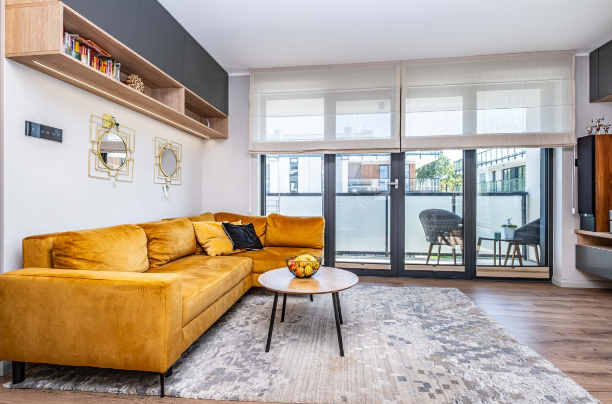 Piękne, nowocześnie zaprojektowane 3-pokojowe mieszkanie na kameralnym, ekskluzywnym osiedlu Bliżej Gwiazd przy ulicy Mehoffera, Tarchomin, (Nowodwory). Mieszkanie wykończono materiałami o wysokim standardzie oraz zainstalowano klimatyzację z 2 jednostkami wewnętrznymi.