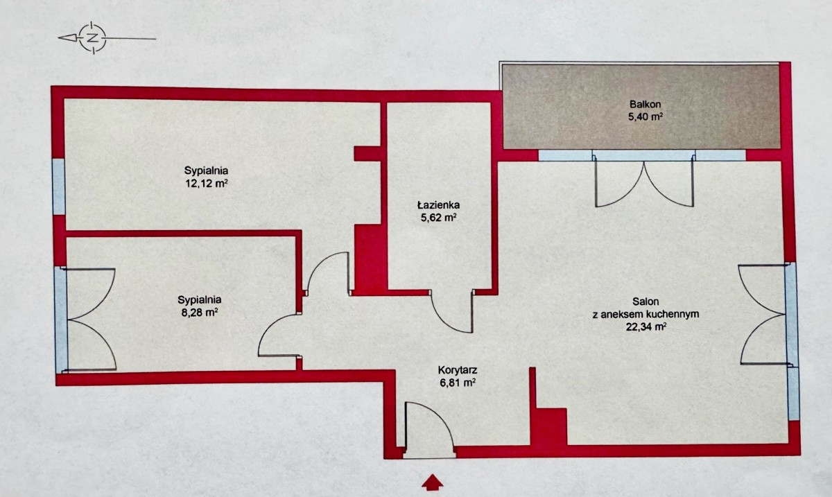 • pokój I - 12,12 m2