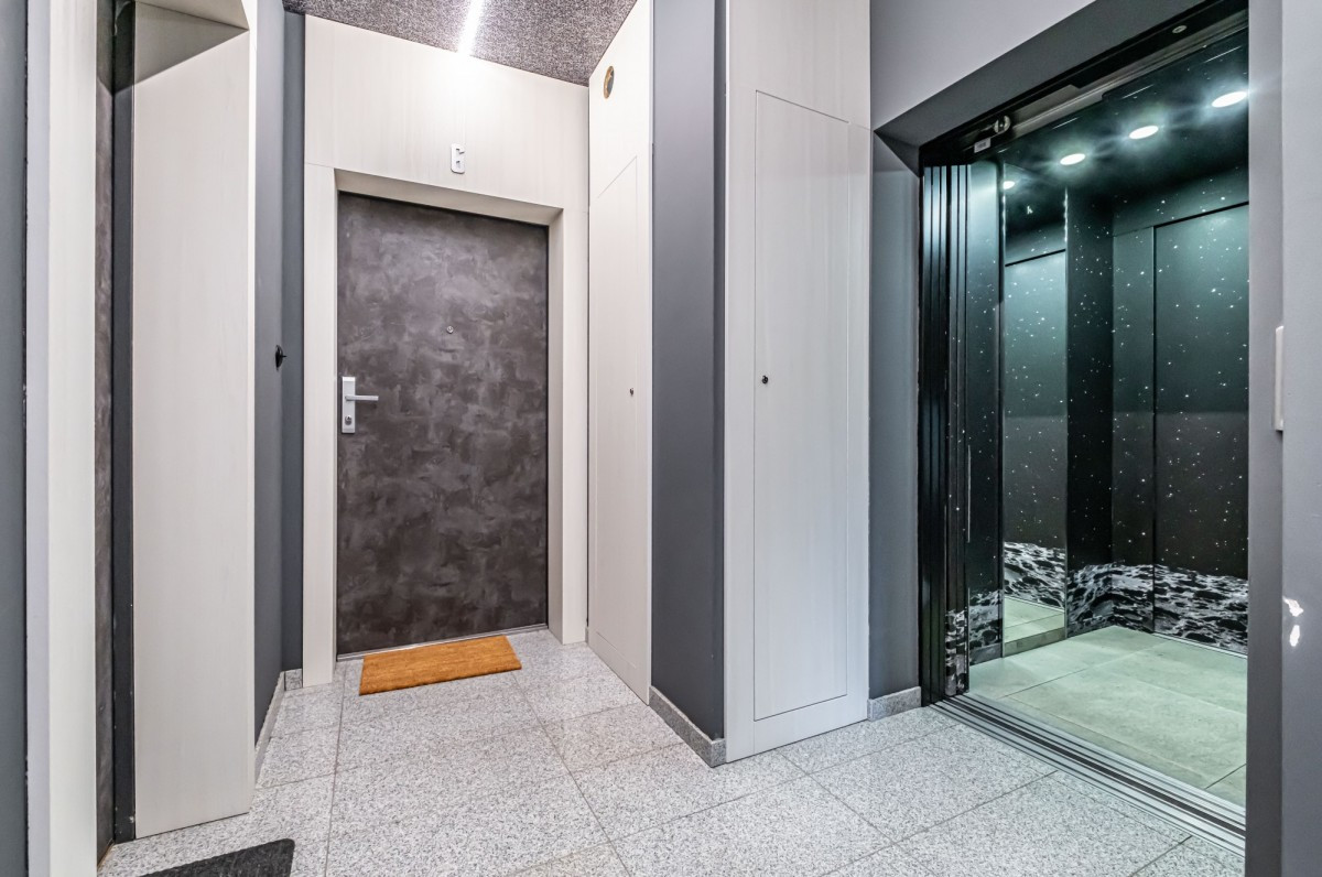 Budynek wyposażony jest w windę oraz znajduje się w nim parking podziemny.