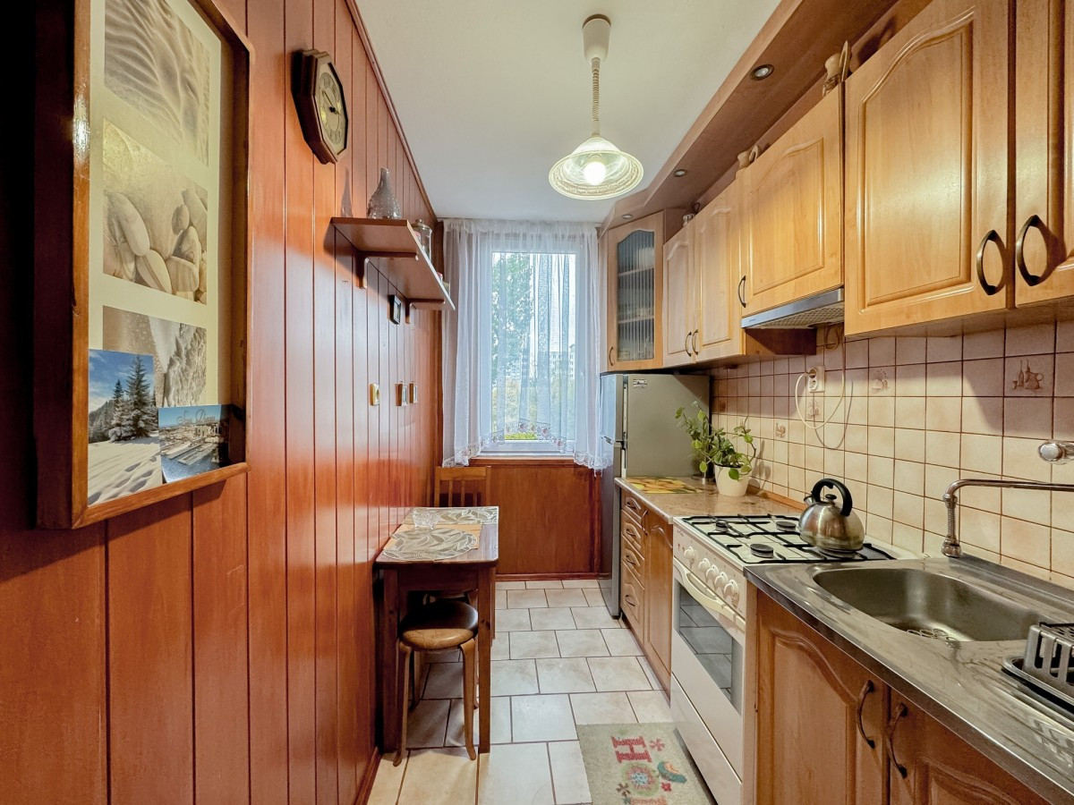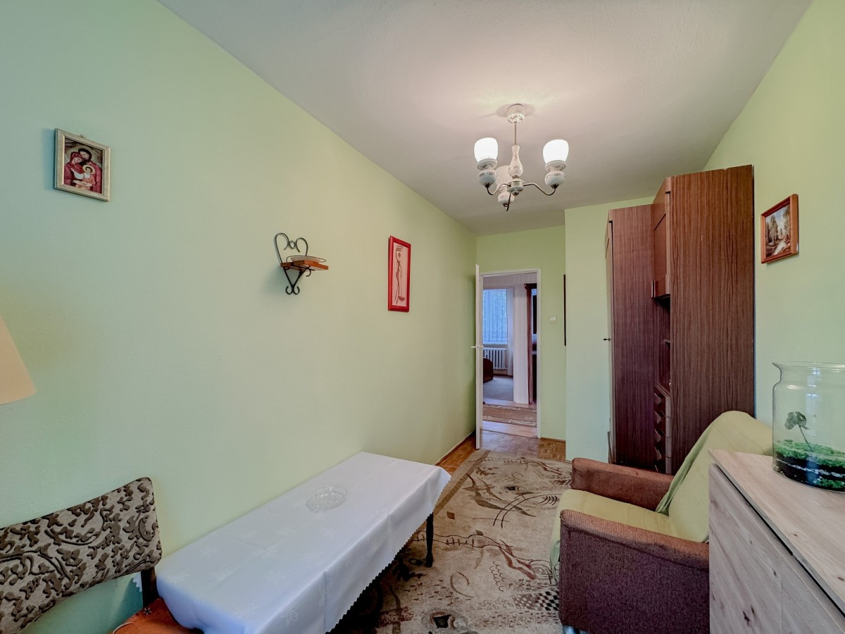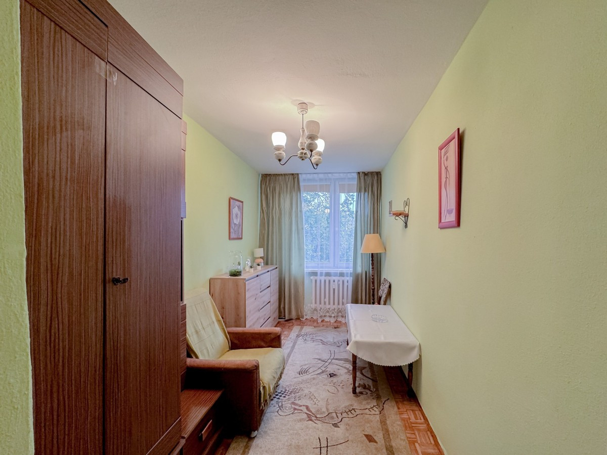 Przedstawiam funkcjonalne, rozkładowe, trójpokojowe mieszkanie o powierzchni 47,5 mkw, położone na 4 z 4 pięter w budynku bez windy. Lokal jest dwustronny, a jego okna wychodzą w kierunku wschodnim i zachodnim, dzięki czemu jest niesamowicie jasny. W mieszkaniu parę lat temu okna zostały wymienione na nowe PCV, a na powierzchnię składają się trzy nieprzechodnie pokoje, zamykana kuchnia posiadająca okno, przedpokój oraz łazienka. W sypialniach na podłodze znajdziemy zadbaną mozaikę dębową, w przedpokoju dobrej jakości panele, a w łazience i kuchni terakotę. Z jednej sypialni wyjście na balkon o powierzchni około 5 mkw w typie loggie, z przepięknym widokiem na park, dzięki zachodniej orientacji mieszkania i balkonowi, będą Państwo mogli podziwiać zachody słońca przy lampce wina czy szklance smacznej herbaty. Mieszkanie pomimo swoich lat jest zadbane i prawdopodobnie dla większości nowych nabywców będzie nadawało się do wprowadzenia bez konieczności wykonania remontu. Z uwagi na trzy niezależne pokoje oraz oddzielną kuchnię, nieruchomość może być świetną okazją dla inwestorów poszukujących nieruchomości do najmu "na pokoje". Do mieszkania na podstawie zwyczajowego prawa do korzystania przynależy piwnica o powierzchni około 3,5 mkw, a prawo własności lokalu to spółdzielcze własnościowe prawo do lokalu bez uregulowanych gruntów, przez co zakup jest możliwy jedynie za gotówkę. Czynsz administracyjny to 670 PLN (zawiera zaliczki na wodę, ogrzewanie oraz fundusz remontowy).