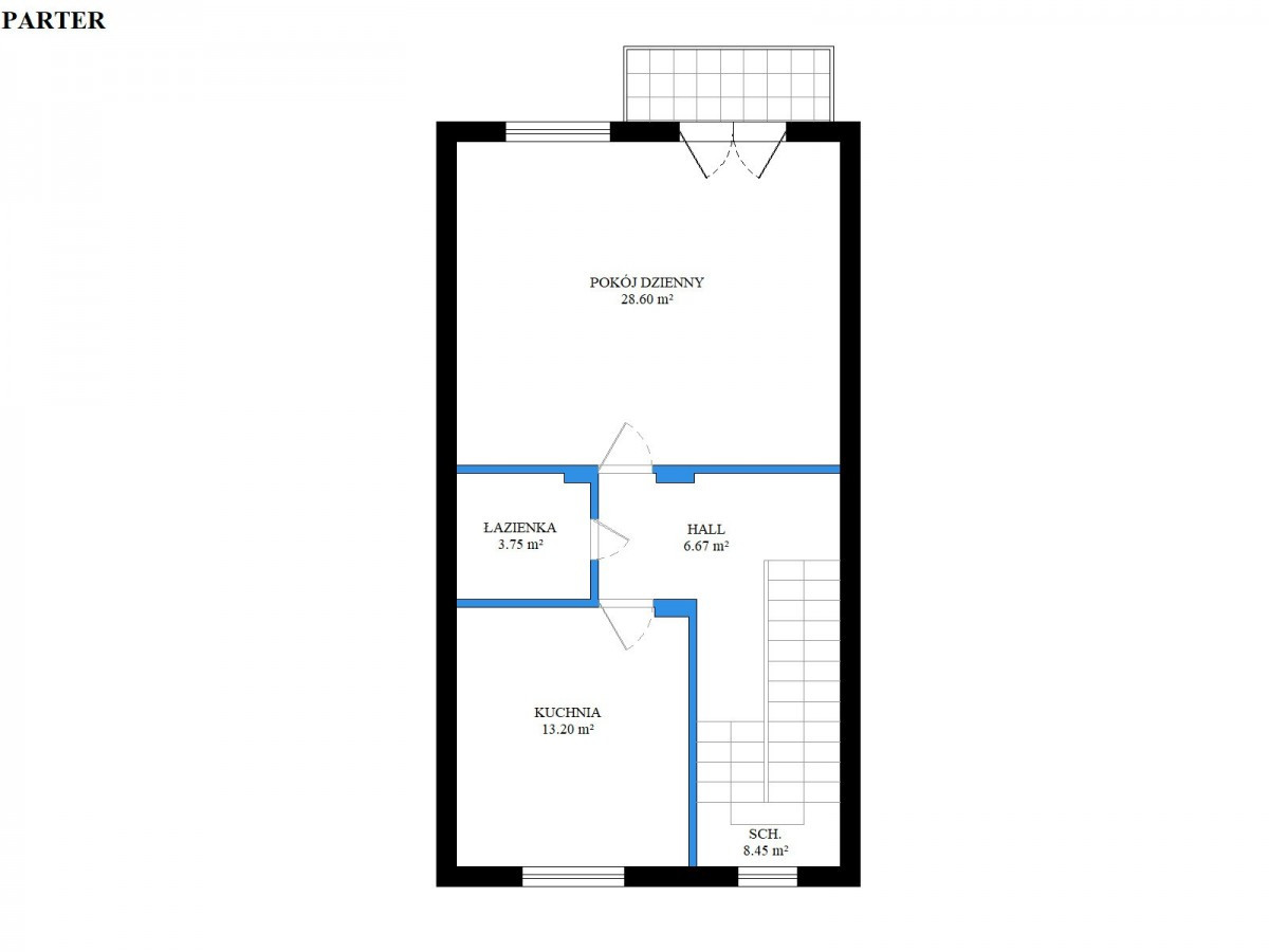 Parter to słoneczny, przestronny salon, kuchnia oraz łazienka z wc.