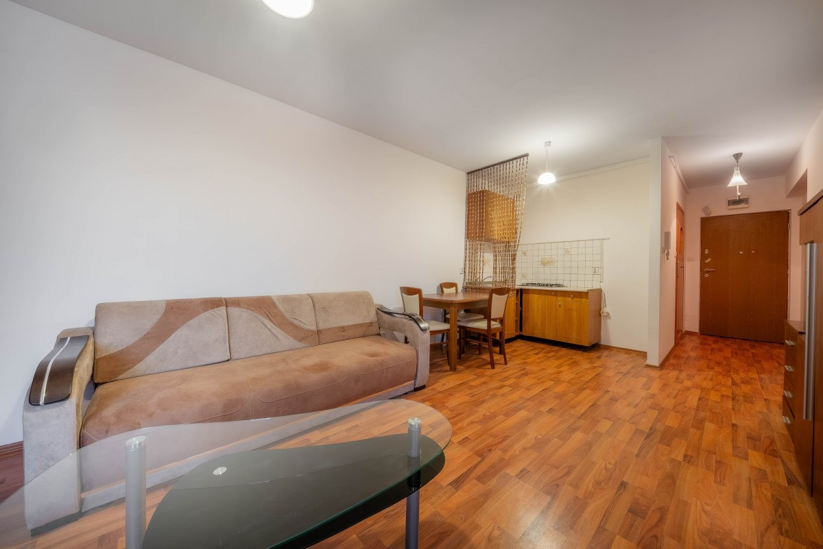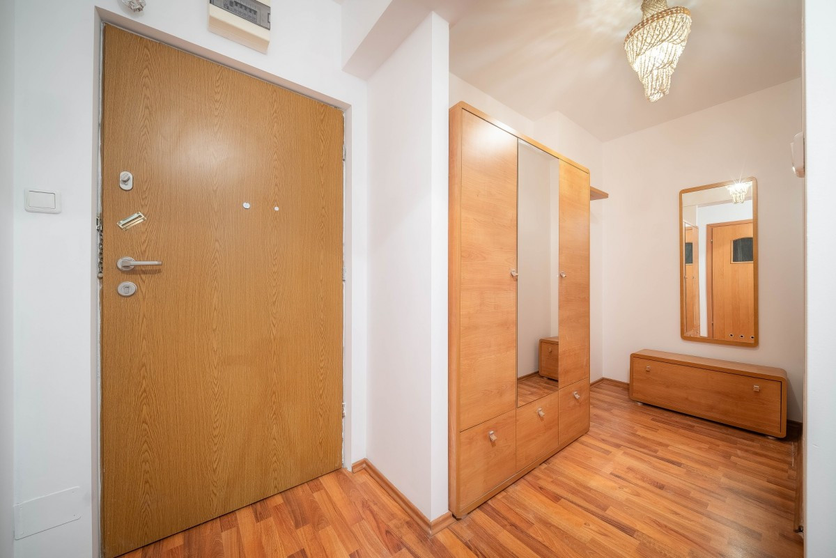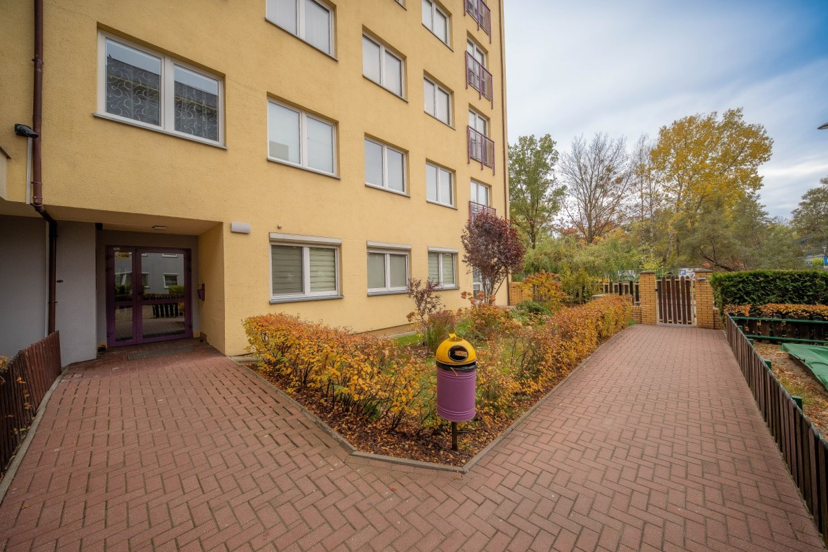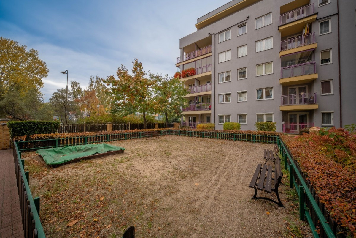 Mieszkanie znajduje się na zamkniętym osiedlu, tuż przy wejściu na osiedle jest przystanek autobusowy z którego dojedziemy do Metra.