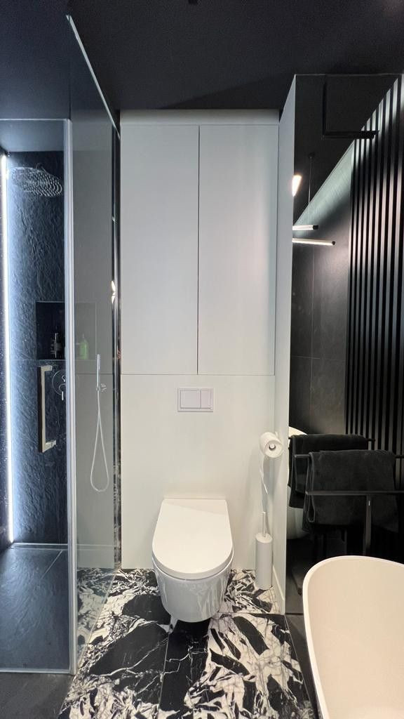 Łazienka: elegancka łazienka z wanną i prysznicem.