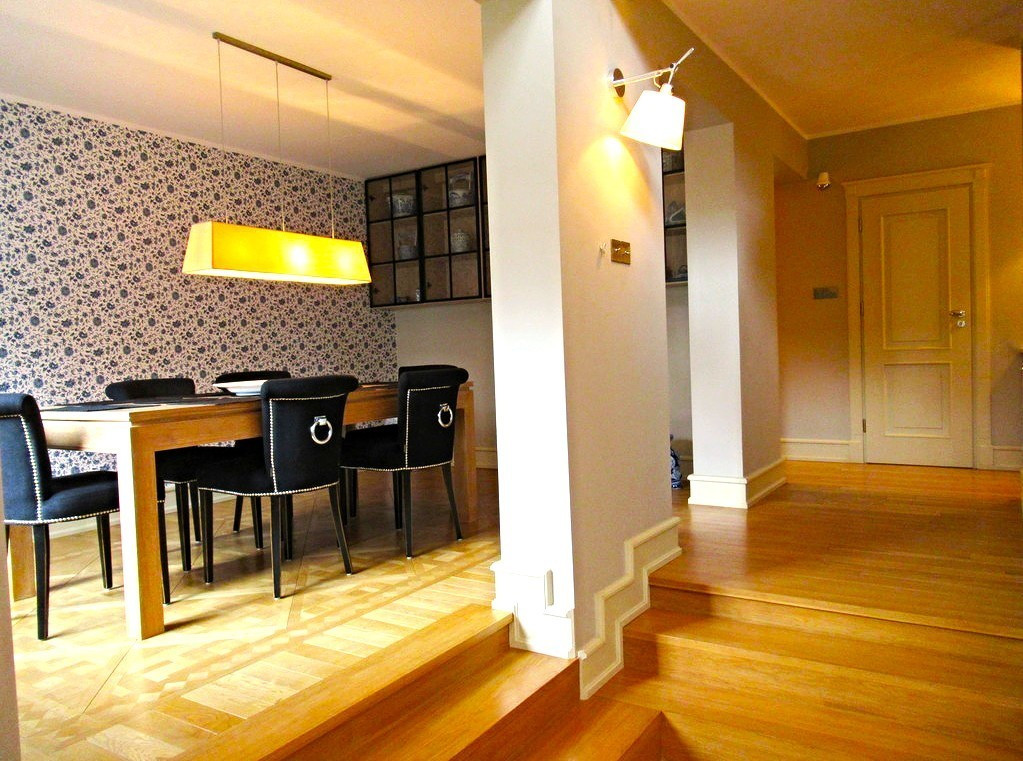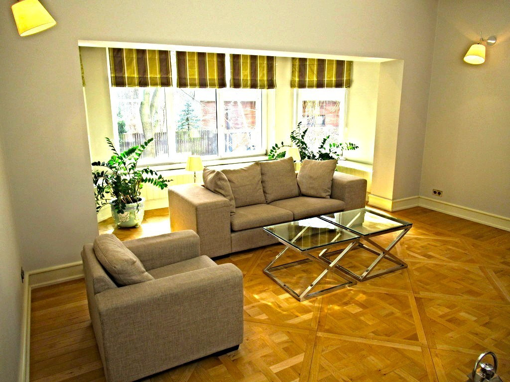 Szczególną uwagę zwracają bardzo wysokiej jakości naturalne drewniane podłogi.
