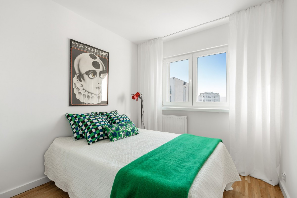Ogół przestrzeni utrzymany w klasycznej bieli, uzupełniony o praktyczne, wbudowane szafy (szer. 2,5 m), daje nieograniczone możliwości aranżacyjne, umożliwiając przyszłym właścicielom stworzenie przestrzeni idealnie odpowiadającej ich indywidualnym potrzebom.