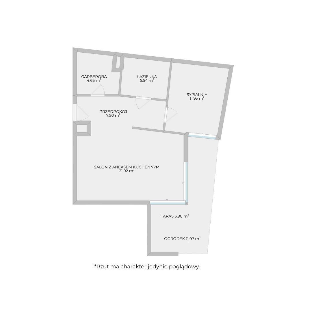 Lokal o powierzchni 51,54 m² położony jest na parterze budynku. Do mieszkania przynależy taras o powierzchni 3,90 m² oraz prywatny ogródek 11,97 m², które stanowią dodatkową przestrzeń do wypoczynku i relaksu. Stan deweloperski pozwala nowym właścicielom na dowolną aranżację wnętrza według własnych potrzeb i gustu.