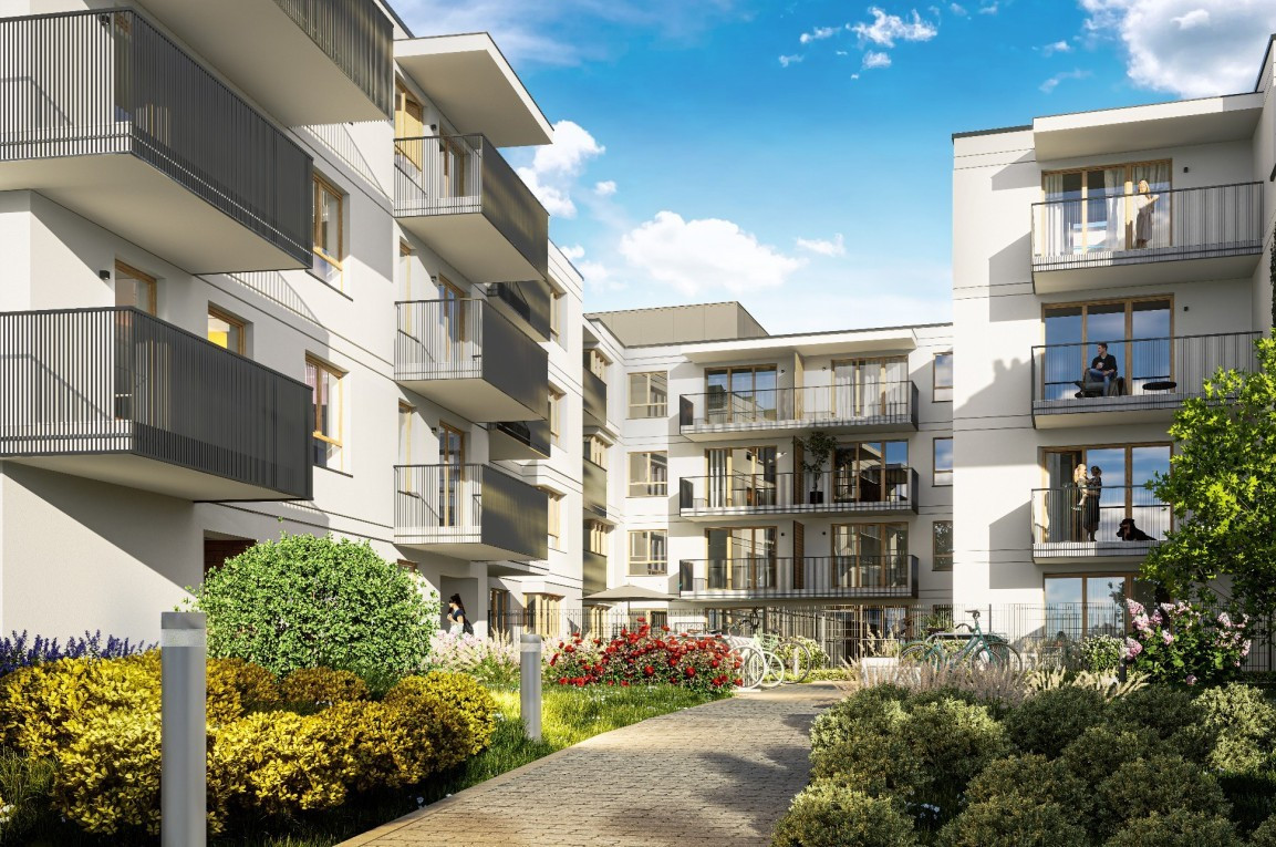 Inwestycja „Na Skraju” to kameralny, czterokondygnacyjny budynek z wewnętrznym patio otwartym na stronę południową. Wyposażony jest w ciche windy, przestronne części wspólne oraz halę garażową z miejscami postojowymi i stojakami na rowery.