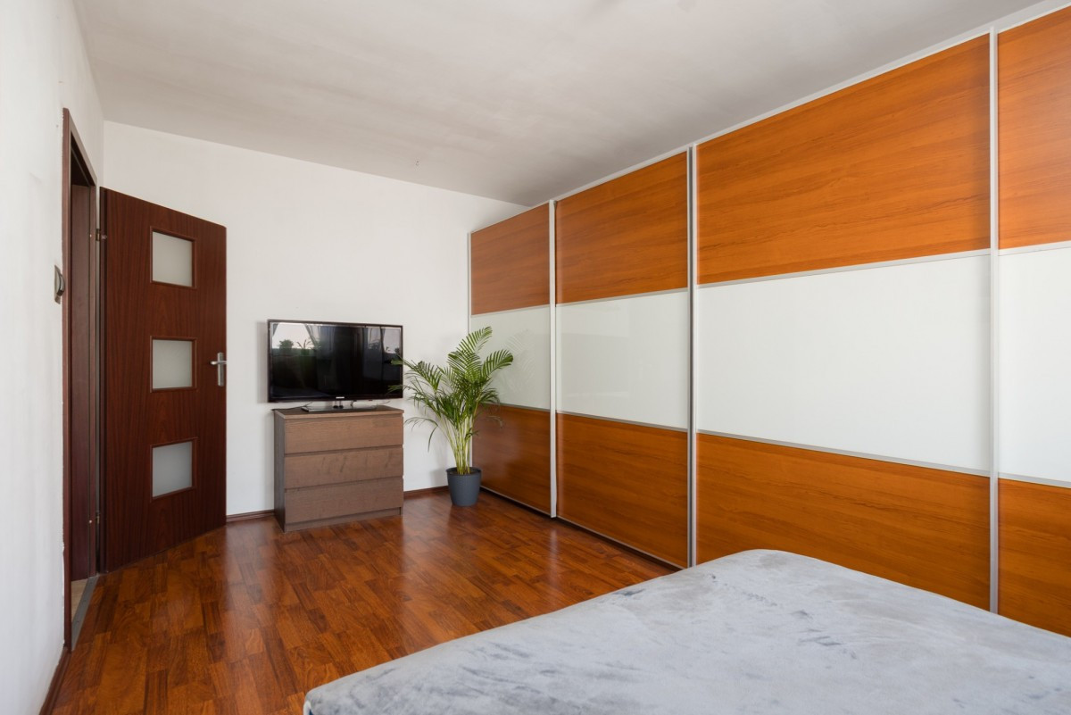 Główna sypialnia to prawdziwa oaza (19,5 m²) - jest na tyle duża, że pomieści duże łóżko, szafy wnękowe i kącik do pracy.