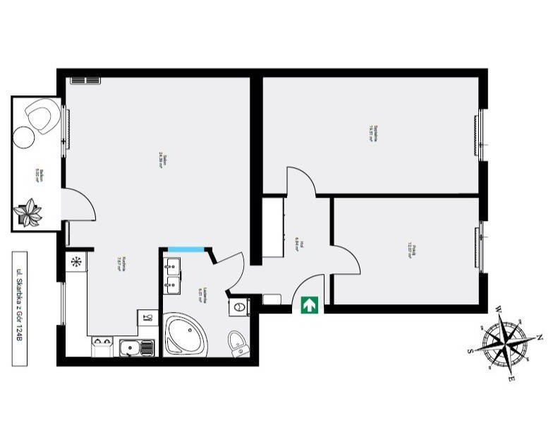 Zakupów: Sklep Żabka (120 m), Lidl (350 m), Biedronka (850 m) oraz liczne punkty usługowe