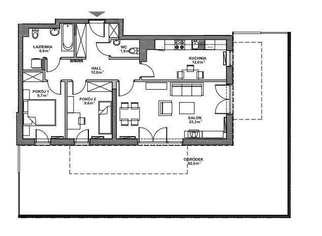 Mieszkanie jest przestronne, składa się z osobnej kuchni z oknem, salonu z wyjściem na ogród dwóch sypialni oraz dwóch łazienek ( jedna z wanną a druga z prysznicem). Dodatkowym atutem mieszkania jest wiele miejsc do przechowywania do przechowywania rzeczy.