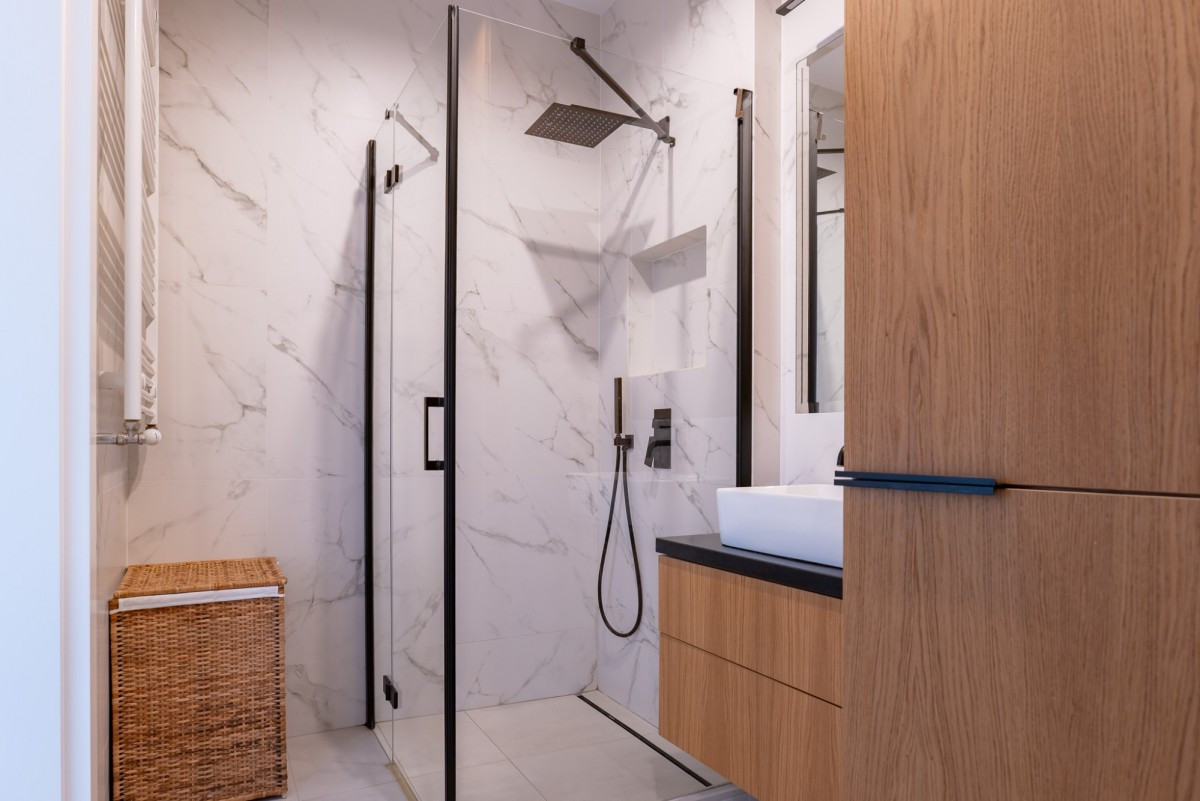 wygodna łazienka z prysznicem,