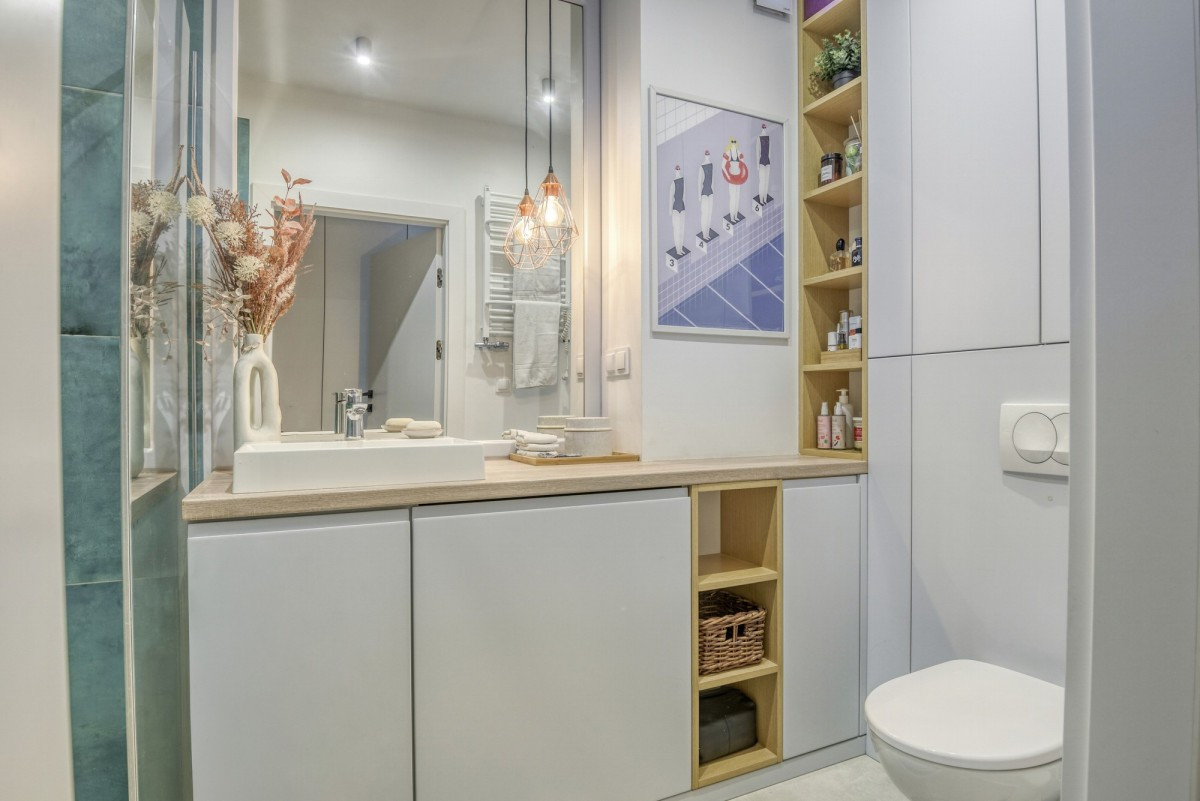 Lokal o pow. 64,5 m2 składa się z 3 ustawnych pokoi, w tym wygodnego salonu z aneksem kuchennym, 2 sypialni, łazienki z WC, garderoby i balkonu o pow. 7,5 m2 (z widokiem na zieleń). Mieszkanie jest gotowe do wprowadzenia, doskonale wykończone, wygodnie zaaranżowane. Duże okna w sypialniach zapewniają doskonałe doświetlenie wnętrz, a balkon stanowi dodatkową przestrzeń do relaksu.
