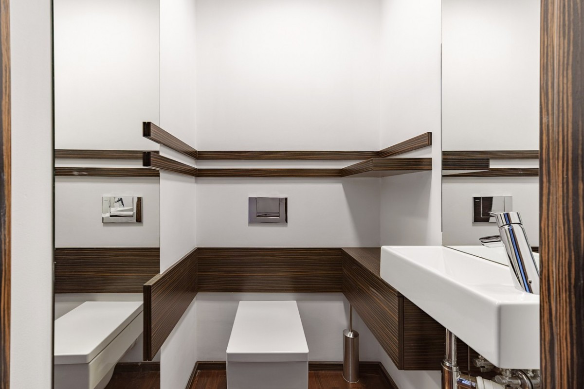 Oddzielna toaleta z umywalką i ceramiką Catalano.