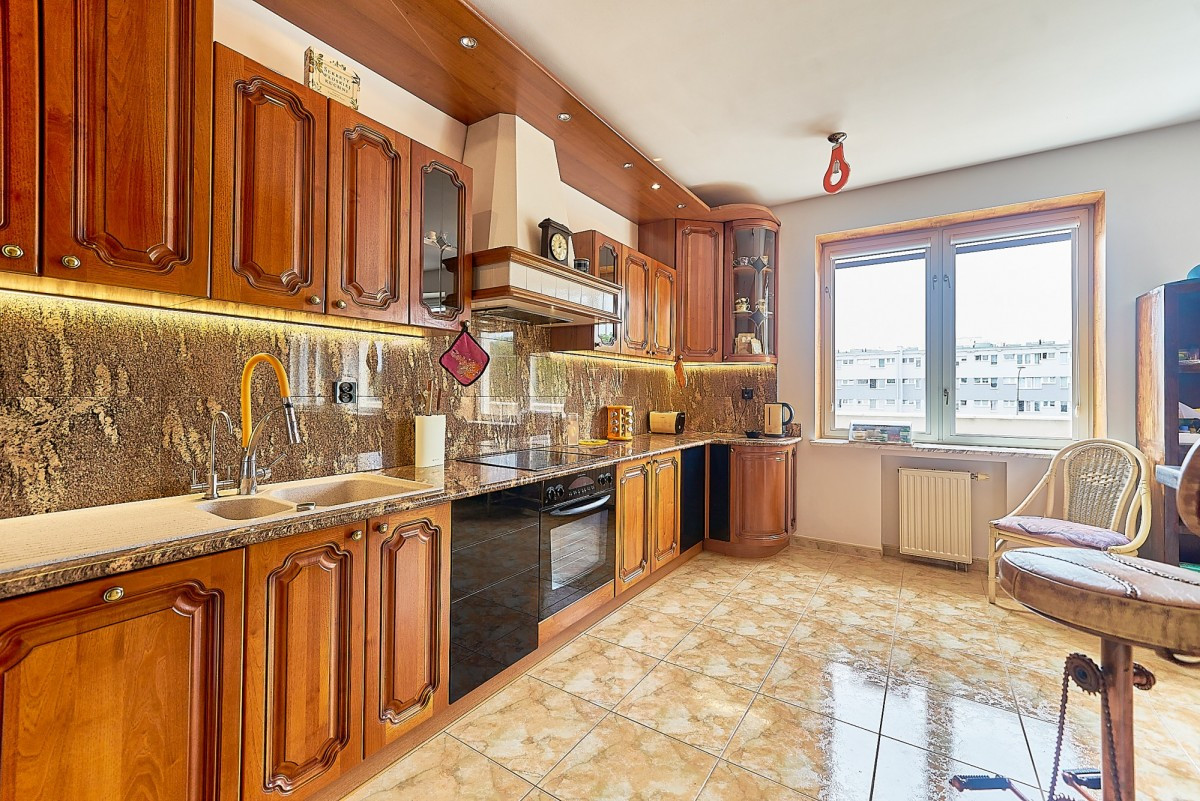 - Kuchnia (ok. 14,18 m²) - widna, w pełni wyposażona w sprzęt AGD (zmywarka, płyta indukcyjna, piekarnik)