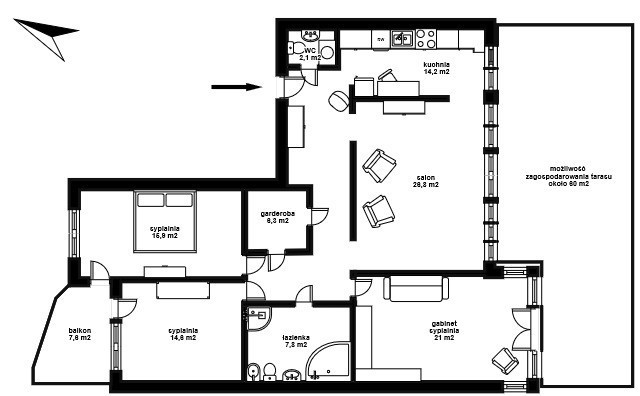 - Możliwość korzystania z dużego tarasu o powierzchni ok. 60 m²