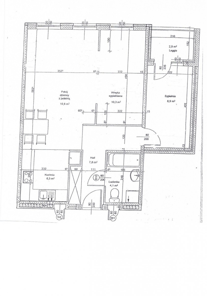 Mieszkanie posiada łącznie 57, 4 m2 powierzchni użytkowej, na którą składają się:
