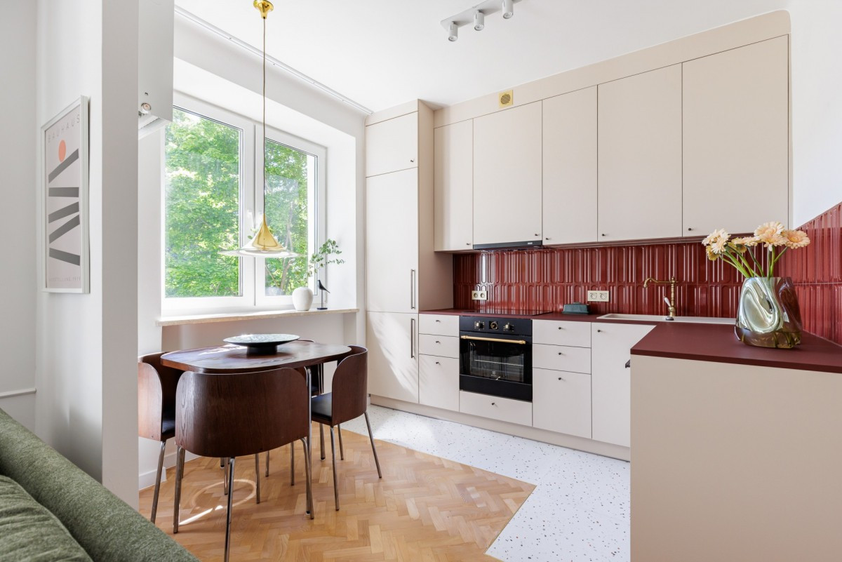 W kuchni znajdziemy robioną na wymiar stolarkę i nowiutki sprzęt AGD dobrych marek (Electrolux, Bosch, Samsung). Lodówka, zmywarka i pralka są w zabudowie. A posiłki będą celebrowane w towarzystwie Ikea Fusion - ikony designu z lat 90ych.