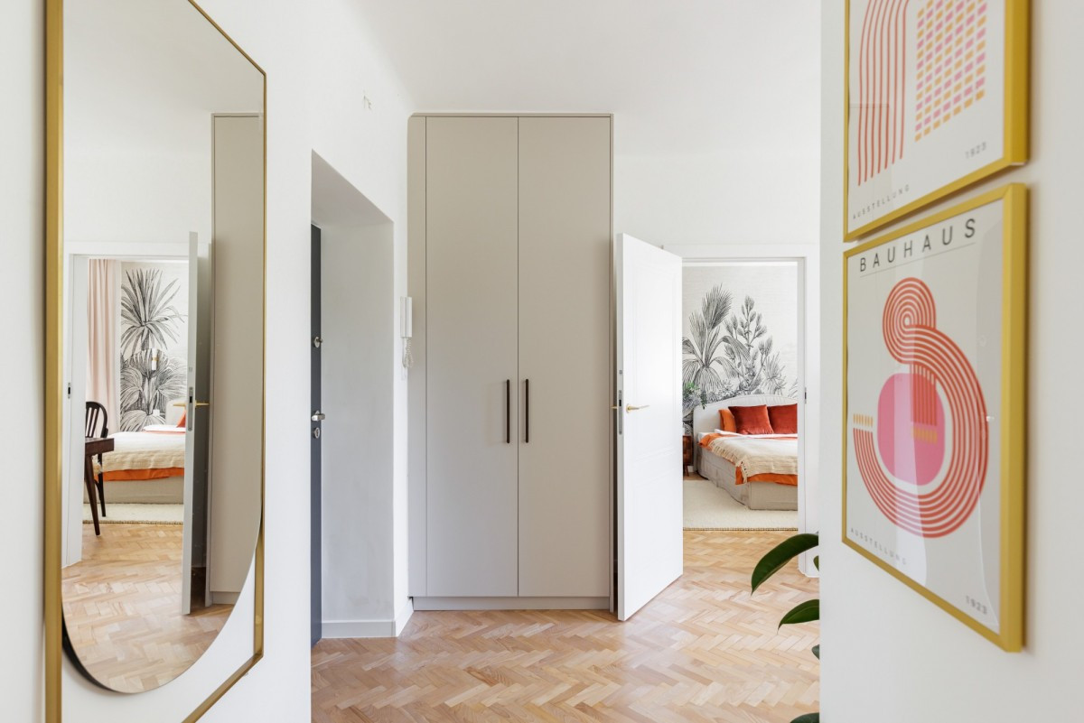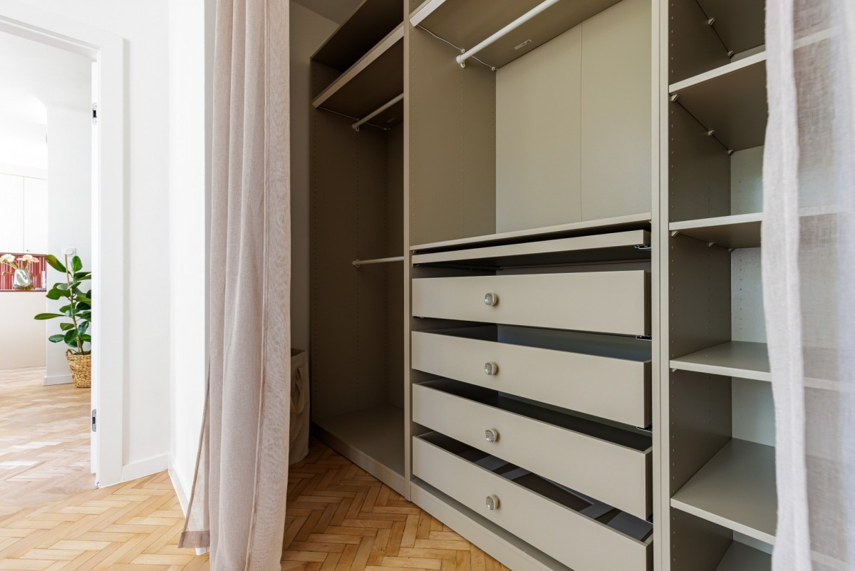 Salon i sypialnia to idealnie dobrane (ale i niezwykle wygodne) designerskie meble nadające mieszkaniu unikalnego klimatu. Ogromną zaletą sypialni jest ogromna podświetlana garderoba IKEA, idealna żeby szybko dopasować ją do swoich potrzeb.