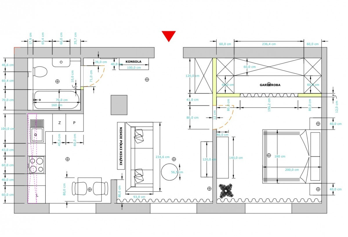 O ile w księdze wieczystej podany metraż to 45,7m2, to wszelkie pomiary robione przez ekipę remontową wskazują na faktyczny metraż na poziomie 47,4m2. Należy to naturalnie zweryfikować we własnym zakresie.