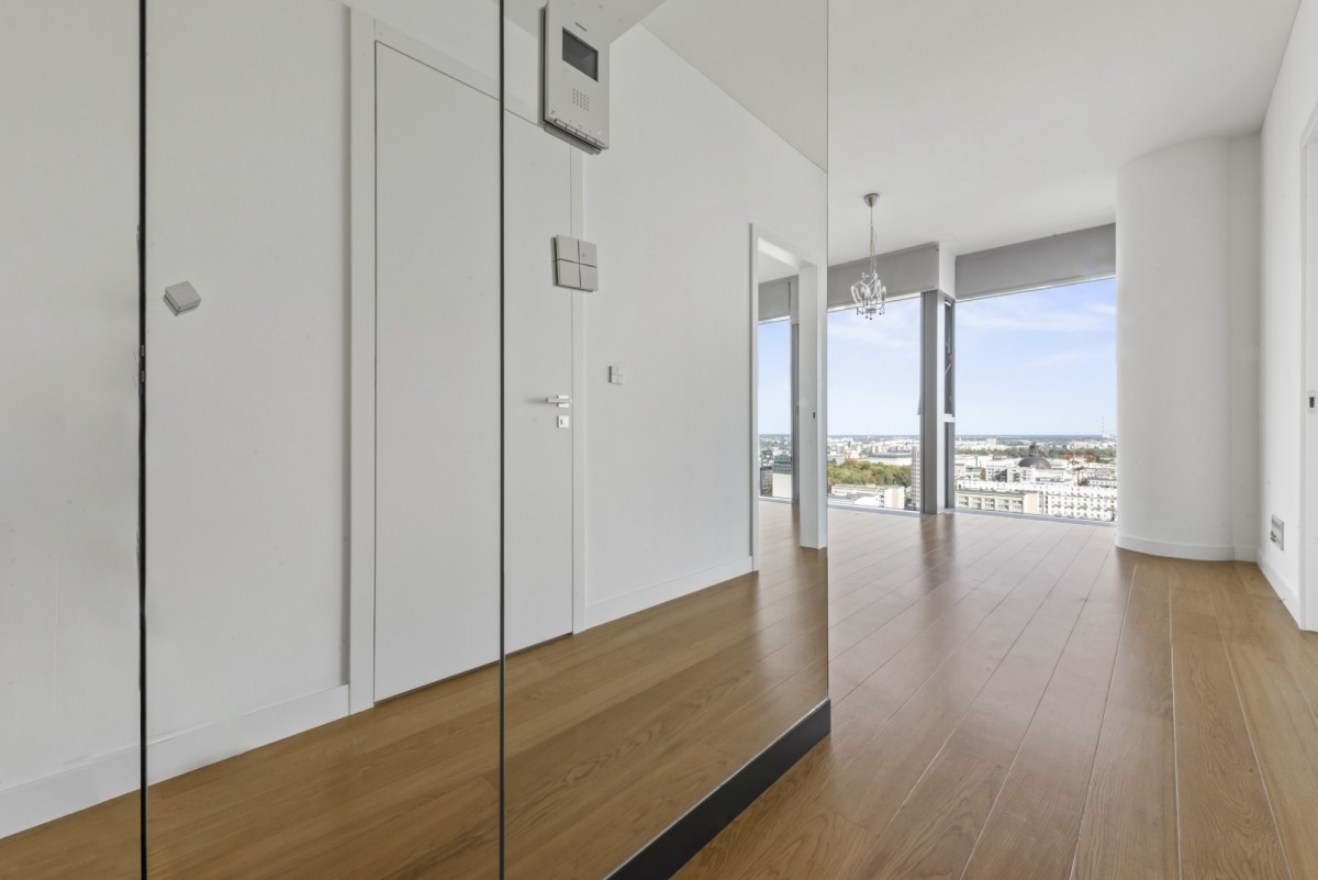Cosmopolitan is a luxurious 44-storey apartment building designed by world-renowned architect Helmut Jahn. Residents have exclusive access to a relaxation area on the 4th floor of the building, including a fitness club with a gym, massage room, dry and wet saunas, as well as club rooms with a kitchen and meeting rooms. An additional advantage is the spacious 840 m² terrace overlooking Grzybowski Square and Emilii Plater Street. Residents also have access to underground parking and a 24-hour reception and security service, ensuring comfort and safety.