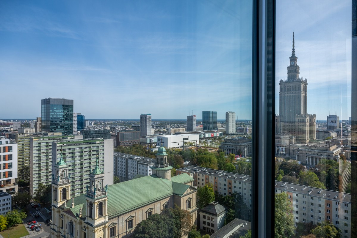 The Cosmopolitan skyscraper is located in the heart of Warsaw, at the intersection of Emilii Plater and Twarda Streets, right next to Grzybowski Square. Its central location ensures excellent transport links, both by car and public transport. Within walking distance, there are numerous bus and tram stops, two underground stations - Rondo ONZ and Świętokrzyska - and the Central Railway Station. It takes less than 20 minutes to get to Fryderyk Chopin Airport. Right next to the building, in addition to numerous shops, restaurants and cafés, there is the Złote Tarasy shopping centre.