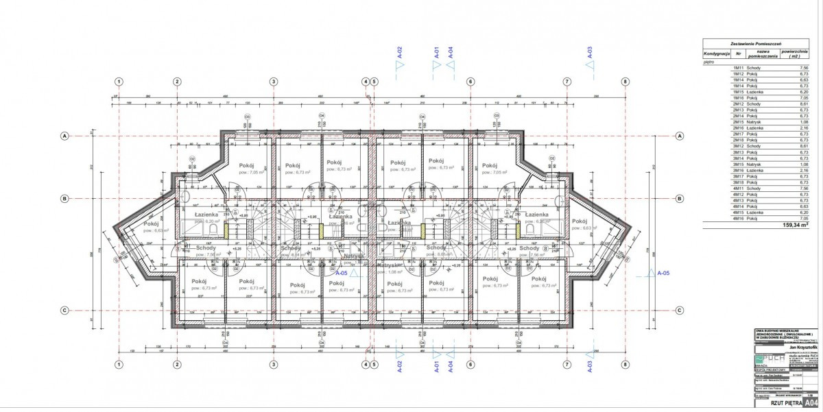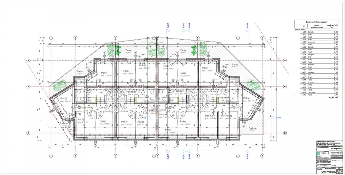 Budynek w zabudowie bliźniaczej składa się z czterech lokali mieszkalnych, każdy z 8 pokojami, wspólną kuchnią i łazienkami na każdym piętrze. Pokoje w pełni wyposażone, część z tarasami. Nieruchomość jest wynajmowana w ramach długoterminowych umów najmu, z obłożeniem bliskim 100% od kilku lat, co gwarantuje stabilny przychód.