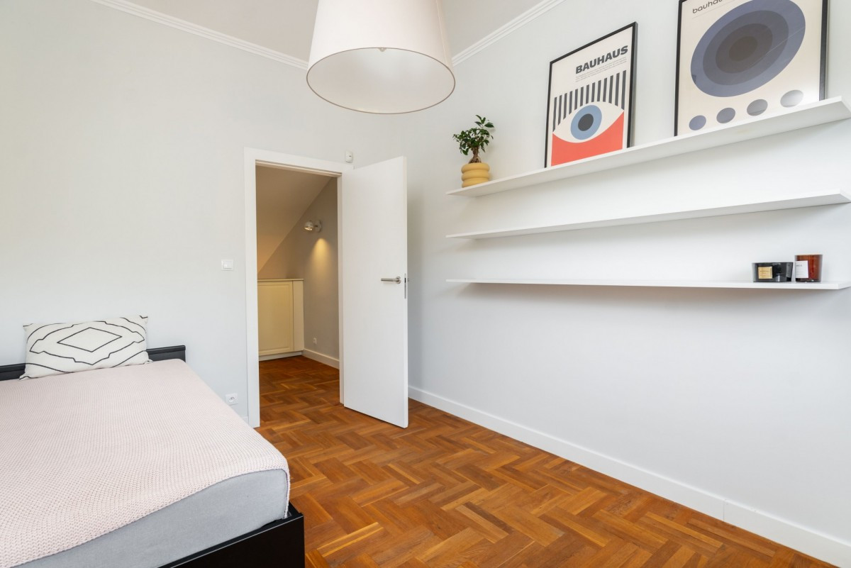 Lokalizacja jest kluczowym atutem. Saska Kępa to jedna z najbardziej pożądanych i prestiżowych dzielnic Warszawy, znana z pięknej architektury, terenów zielonych i doskonałej infrastruktury. W pobliżu znajdują się renomowane szkoły (w tym międzynarodowe), przedszkola, obiekty rekreacyjne oraz pełna infrastruktura miejska, co czyni to miejsce idealnym dla rodzin.