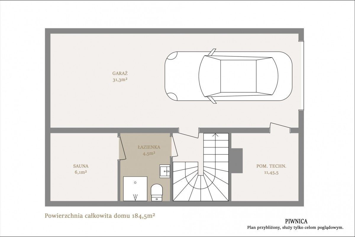 Na piętrze znajdują się 3 sypialnie w tym jedna sypialnia główna z łazienką i garderobą oraz dodatkowa osobna łazienka.