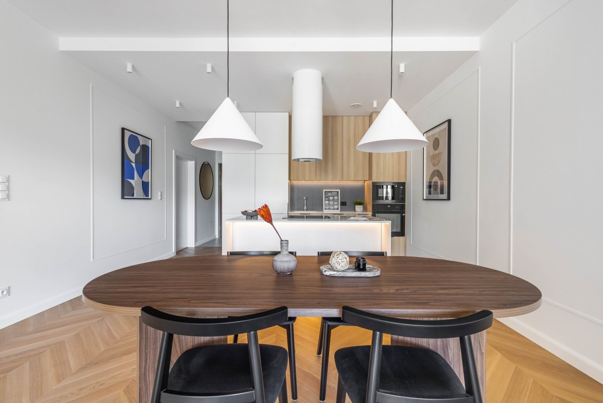 Doskonale wykończony i rewelacyjnie zaprojektowany apartament, położony na 2 piętrze, 6 piętrowego, apartamentowca "Dom Na Dolnej", położonego w jednej z najpopularniejszych i najbardziej lubianych dzielnic miasta, Mokotowie. Projekt wykonany w wysokim standardzie, w konwencji minimalistycznej elegancji z niebywałą precyzją i smakiem.