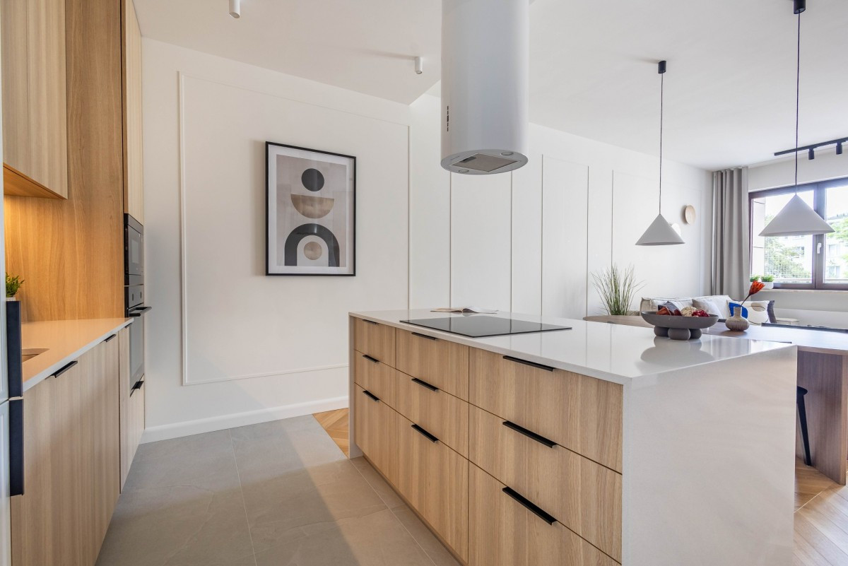 - Ergonomiczny, wygodny, w pełni wyposażony aneks kuchenny z dużą funkcjonalną wyspą