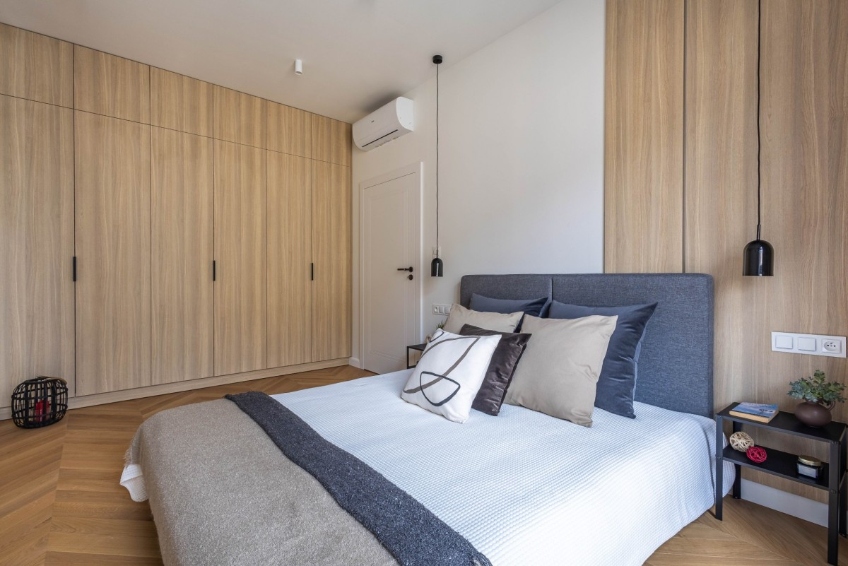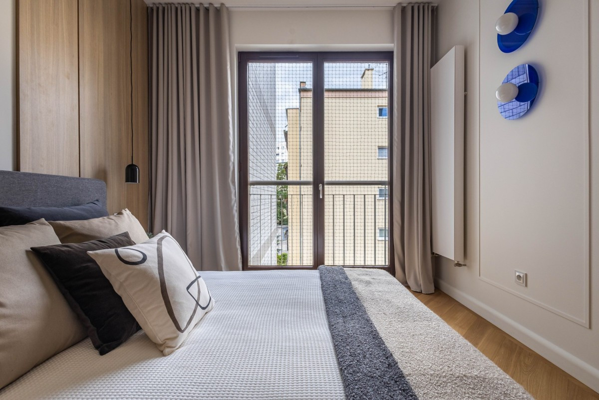- Komfortową, ustawną sypialnię główną z balkonem francuskim oraz szafami z zabudowie