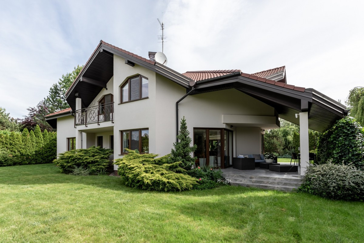 Na szczególną uwagę zasługuje starannie zagospodarowany, zadbany ogród. Nieruchomość znajduje się w otoczeniu innych domów, jednak dzięki przemyślanemu układowi ogrodu zapewnia ona wysoki poziom prywatności, jednocześnie dając poczucie bezpieczeństwa wynikające z obecności sąsiadów.