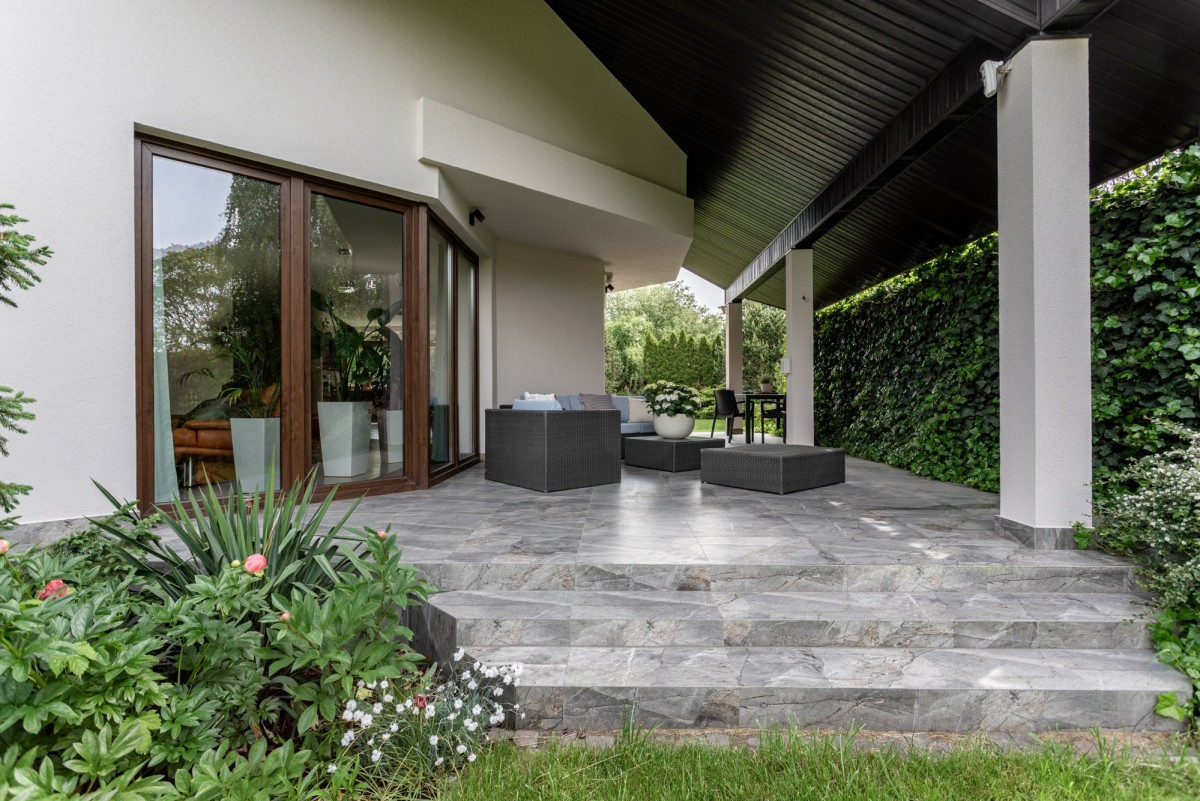 Ogród posiada system automatycznego podlewania oraz oświetlenie, co pozwala na korzystanie z tej przestrzeni również wieczorem. Na podjeździe przewidziano miejsce do zaparkowania dodatkowych dwóch samochodów.